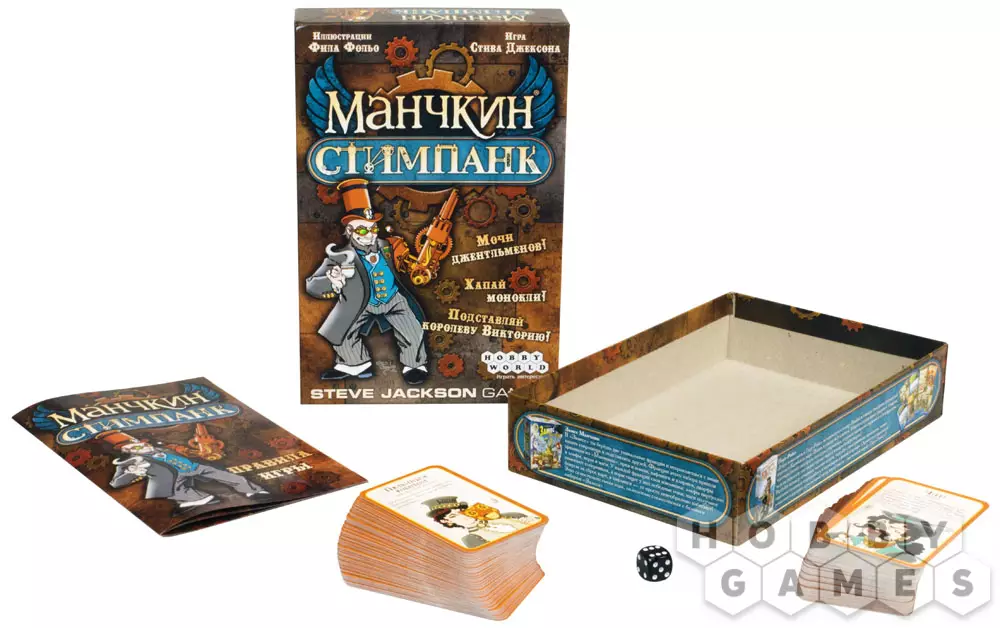 Где манчкины уже только не побывали… На этот раз пришло время надевать цилиндры, хвататься за элегантные тросточки и грациозно разорять подземелья, полные скрипучих шестерёнок, пышущих жаром труб и других атрибутов альтернативного научного прогресса.