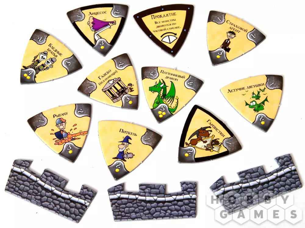 Hobbygames06.02.2015 15:36Здравствуйте. Каждый ход монстры двигаются внутри замка, по часовой стрелке. Их оттуда никак невозможно выманить или убить. Убить их может только суперманчкин или специальные карты, свойства. Когда монстры двигаются внтури замка, они ударяются о стены и разрушают их, получая при этом урон, который может их убить.