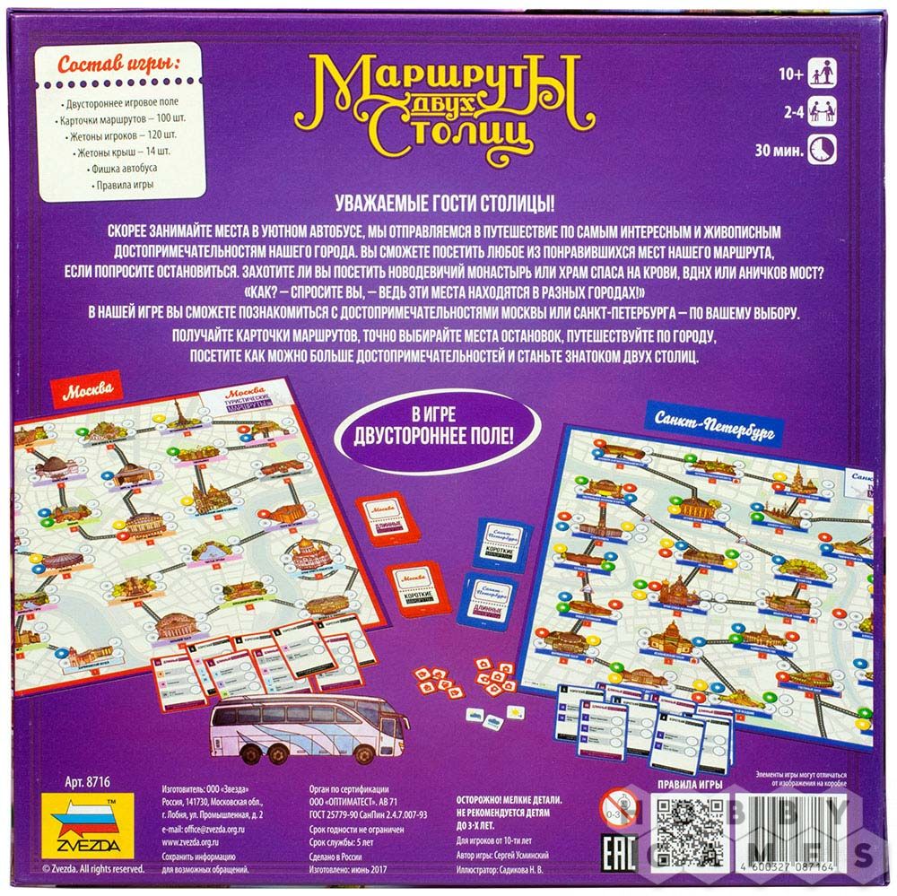 Путешествие – дело трудоёмкое, даже если хочется посмотреть родные города – Москву или Санкт-Петербург. Если вы хотите ознакомиться с достопримечательностями, не выбираясь при этом из-за игрового стола, то на помощь придёт игра "Маршруты двух Столиц"!