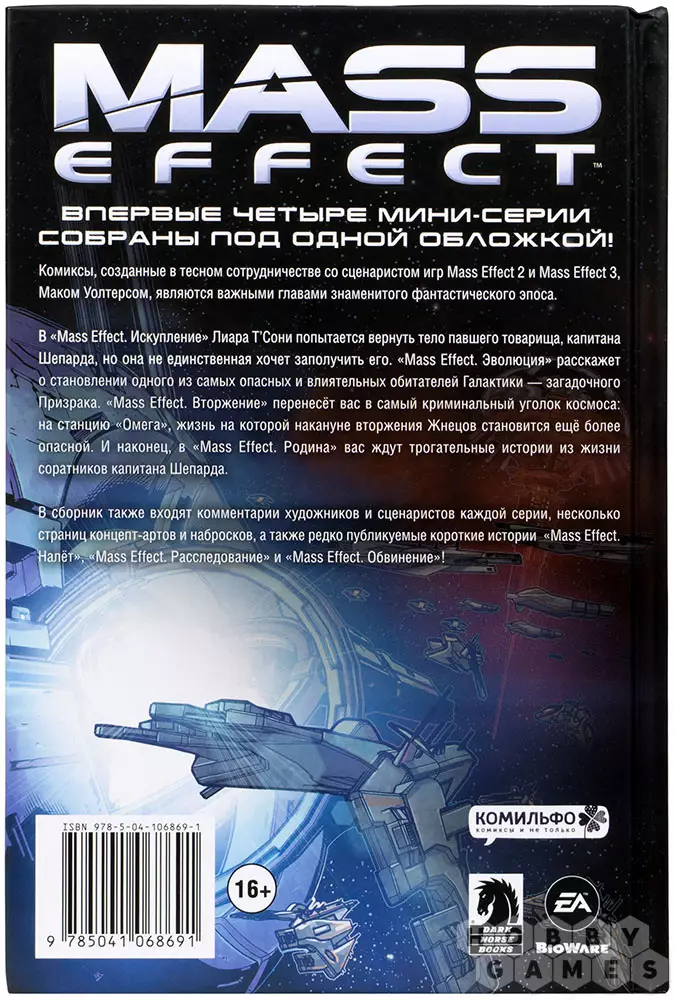 "Mass Effect. Том 1" объединяет в себе 4 главных комикса серии, а также включает бонусы в виде коротких историй, концепт-артов и комментариев художников и сценаристов.