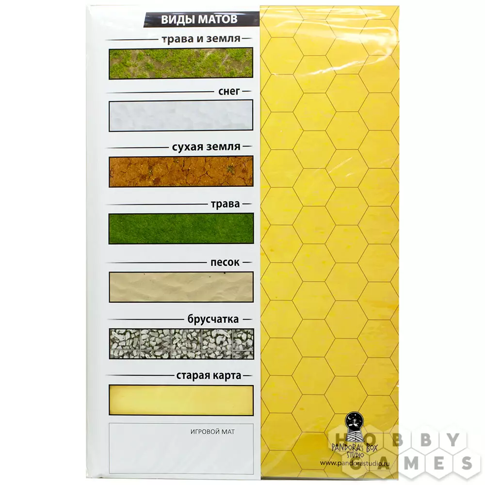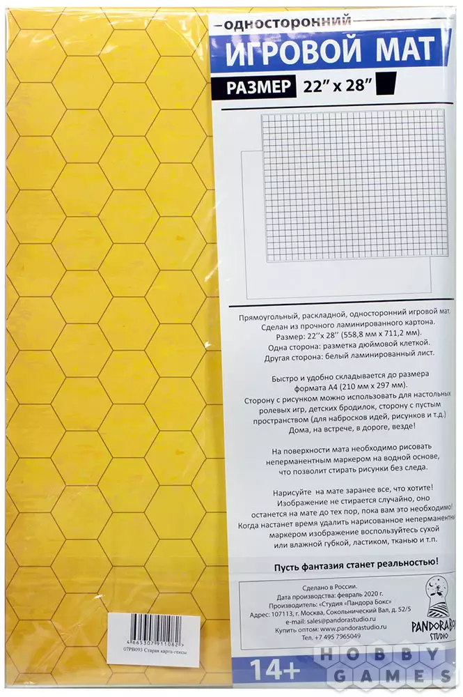 Этот игровой мат – отличное приспособление для настольных ролевых игр. Деталей ландшафта всегда будет недостаточно, и неплохой выход из этой ситуации – игровое поле, на котором можно нарисовать всё необходимое. Двухсторонняя ламинация мата не только защищает его от воздействия воды или грязи, но и позволяет бесследно стирать нарисованные неперманентным маркером схемы ландшафта. В разложенном виде размер игрового поля 22x28 дюймов, но для удобства транспортировки его легко сложить до формата А4. Одна сторона мата стилизована под старую карту, на которую нанесена гексагональная дюймовая (25x25 мм) разметка, другая – чистая. На обратной стороне можно записывать какие-либо реплики, условия, результаты бросков кубиков и т.д.