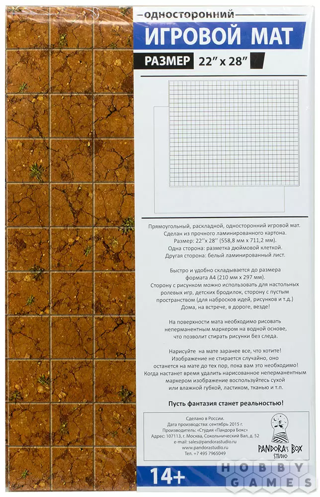 Этот игровой мат – отличное приспособление для настольных ролевых игр. Деталей ландшафта всегда будет недостаточно, и неплохой выход из этой ситуации – игровое поле, на котором можно нарисовать всё необходимое. Двухсторонняя ламинация мата не только защищает его от воздействия воды или грязи, но и позволяет бесследно стирать нарисованные неперманентным маркером схемы ландшафта. В разложенном виде размер игрового поля 22x28 дюймов, но для удобства транспортировки его легко сложить до формата А4. На лицевой стороне мата изображена растрескавшаяся под палящими лучами солнца почва, быть может, загадочной южной страны, куда попали ваши герои, на обратной стороне – чистое белое поле, которое может послужить черновиком для записей или набросков.