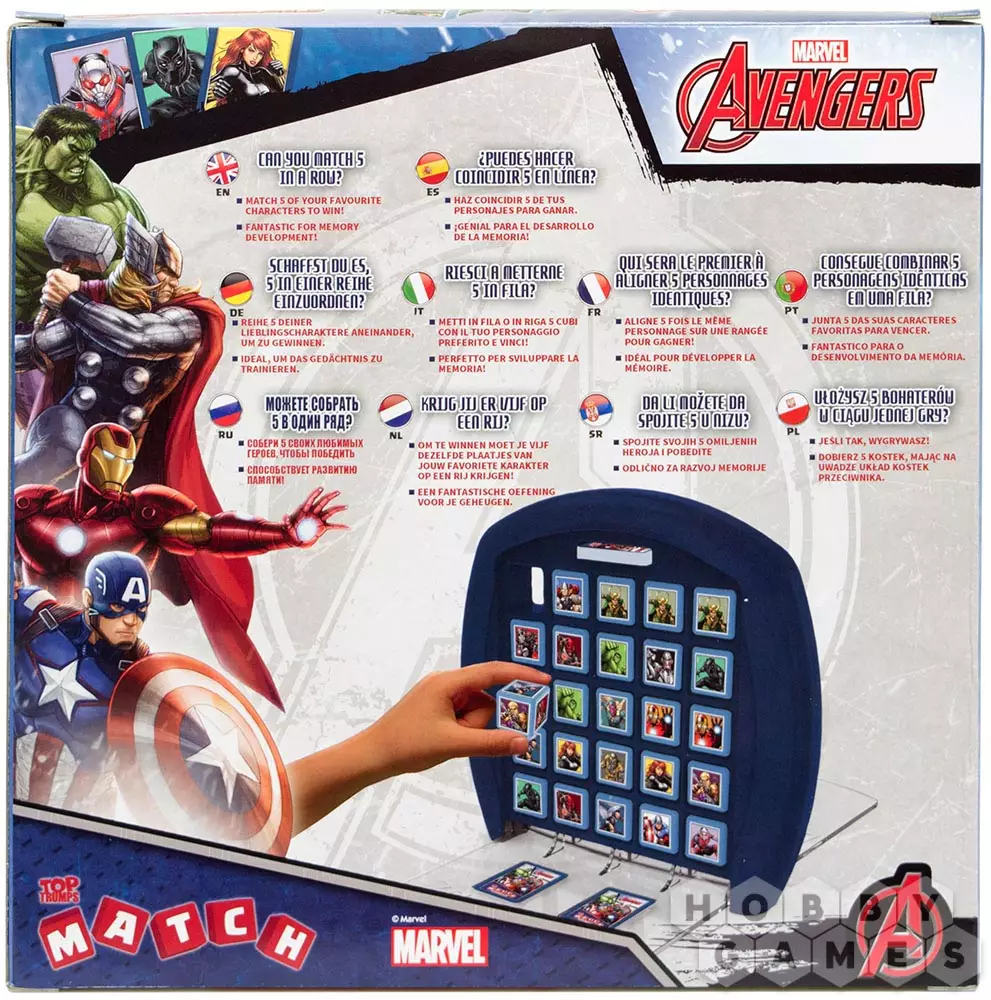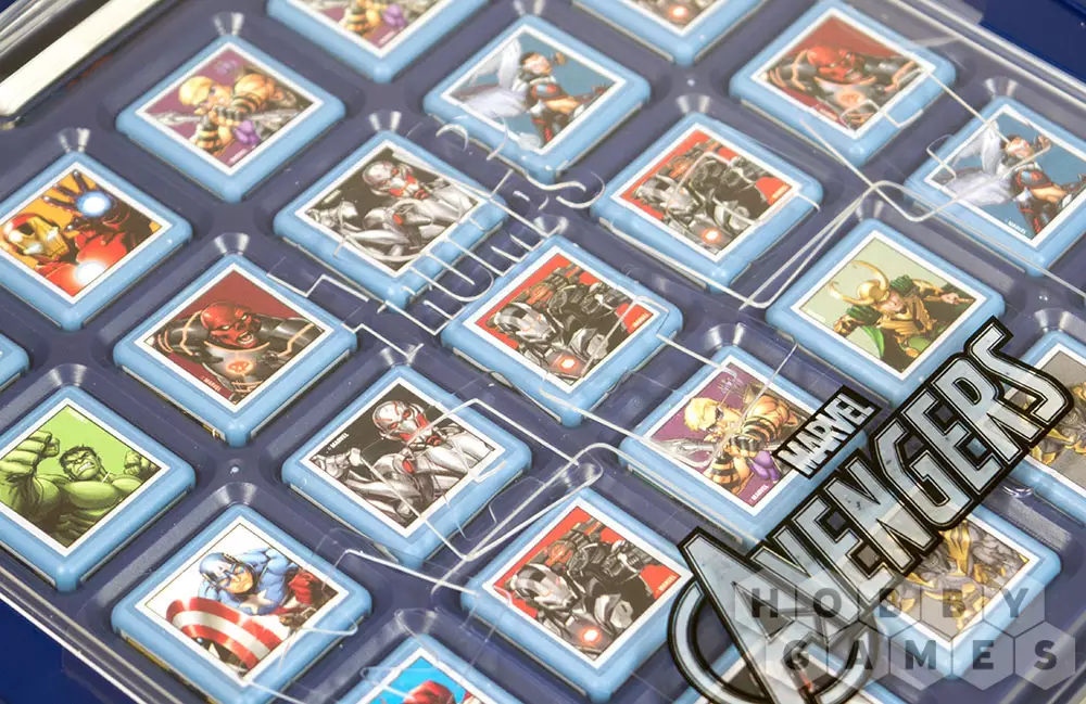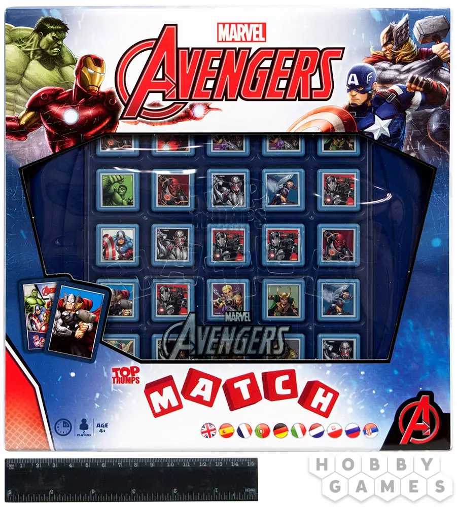 Поле представляет собой квадрат пять на пять, сформированный из двухсторонних кубиков с героями и злодеями. Что на стороне противника, сразу непонятно. В начале игры верхний левый кубик изымается из поля, он становится ведущим. Игроки получают по две карточки, которые определят, какие герои смогут принести им победу. В свой ход игрок будет брать ведущий кубик и заменять им один из кубиков на поле таким образом, чтобы собрать пять картинок с нужными героями в ряд. Так мстители будут постоянно маневрировать по полю, пока один из игроков не выстроит ряд из пяти кубиков и этот Мститель не завершит бой суперударом!