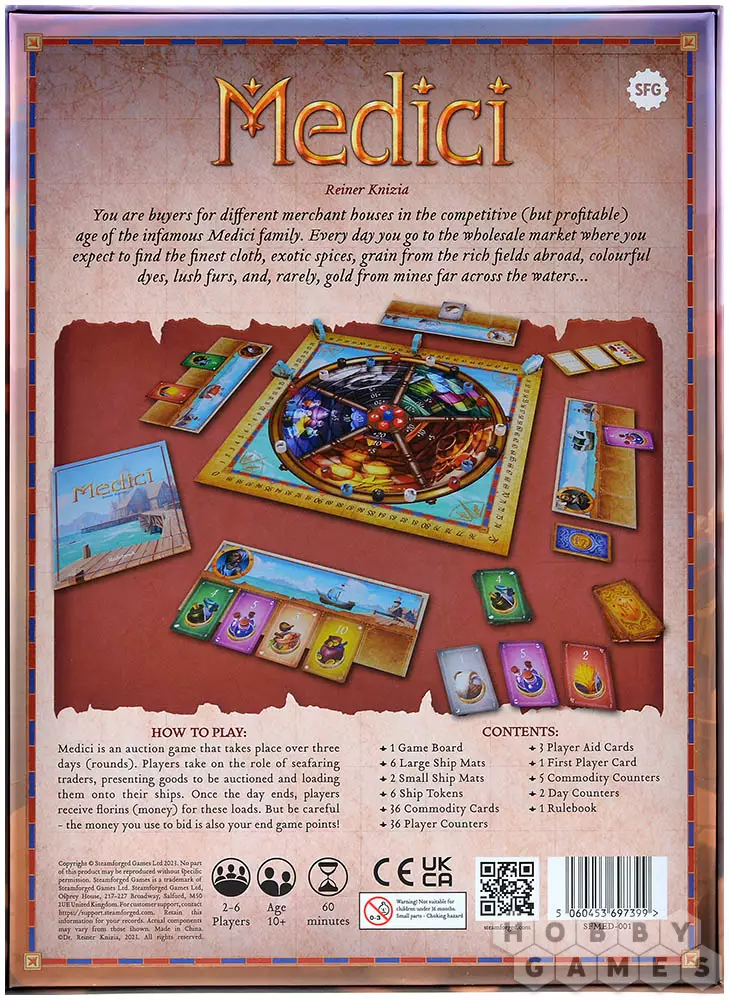 Medici – это игра формата аукциона, в которой вам предстоит проверить не только свои стратегические и экономические навыки, но и удачу. Грамотно распоряжайтесь своими финансами, выбирая, на что вы хотите потратить деньги, а где будет лучше сэкономить. Чем дороже полученный вами товар, тем больше победных очков – флоринов – вы в конечном счёте получите. Вот только следующий кон придётся выкупать тоже за них... Докажите соперникам, что никто из них не умеет вести бизнес лучше вас, и сделайте свой торговый дом самым известным во Флоренции!
