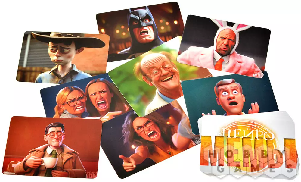 Правила игры "Мемы Нейро" настолько просты, что объяснены прямо на коробке! В начале раунда ведущий зачитывает одну ситуацию – она может быть смешной, злободневной, неловкой или какой-либо ещё. Следом каждый игрок должен выложить из руки по одной карте мема, который, согласно его мнению, подходит для озвученной ситуации. Когда игроки закончат, ведущий выбирает лучший мем, а его автор получает часть оставшихся карточек в качестве трофеев. Тот, у кого стопка трофеев в конце игры окажется наиболее внушительной, получает почётное звание главного мемолога вашей тусовки!