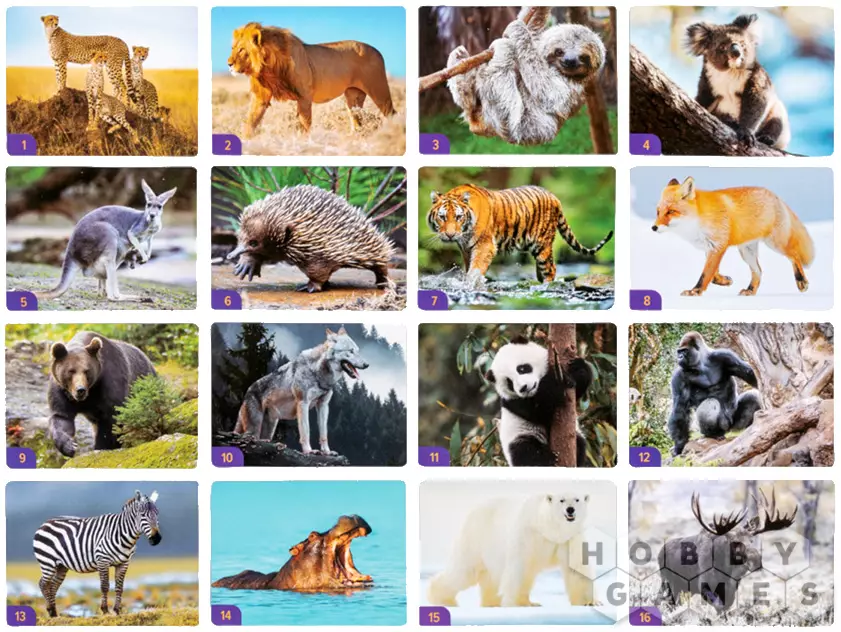 Наверняка вы не раз восхищались красотой дикой природы и её обитателей: грацией пумы, плотной шубой лисы, королевской осанкой венценосного лося. И не раз улыбались из-за неловкости панды, умильности енота и человечности гориллы. Возьмите эту колоду, на картах которой изображены 16 представителей животного мира, и сыграйте с друзьями, рассматривая качественные иллюстрации и заодно заглядывая в брошюру с любопытными фактами – чтобы узнать немного больше о пушистых и не очень героях.