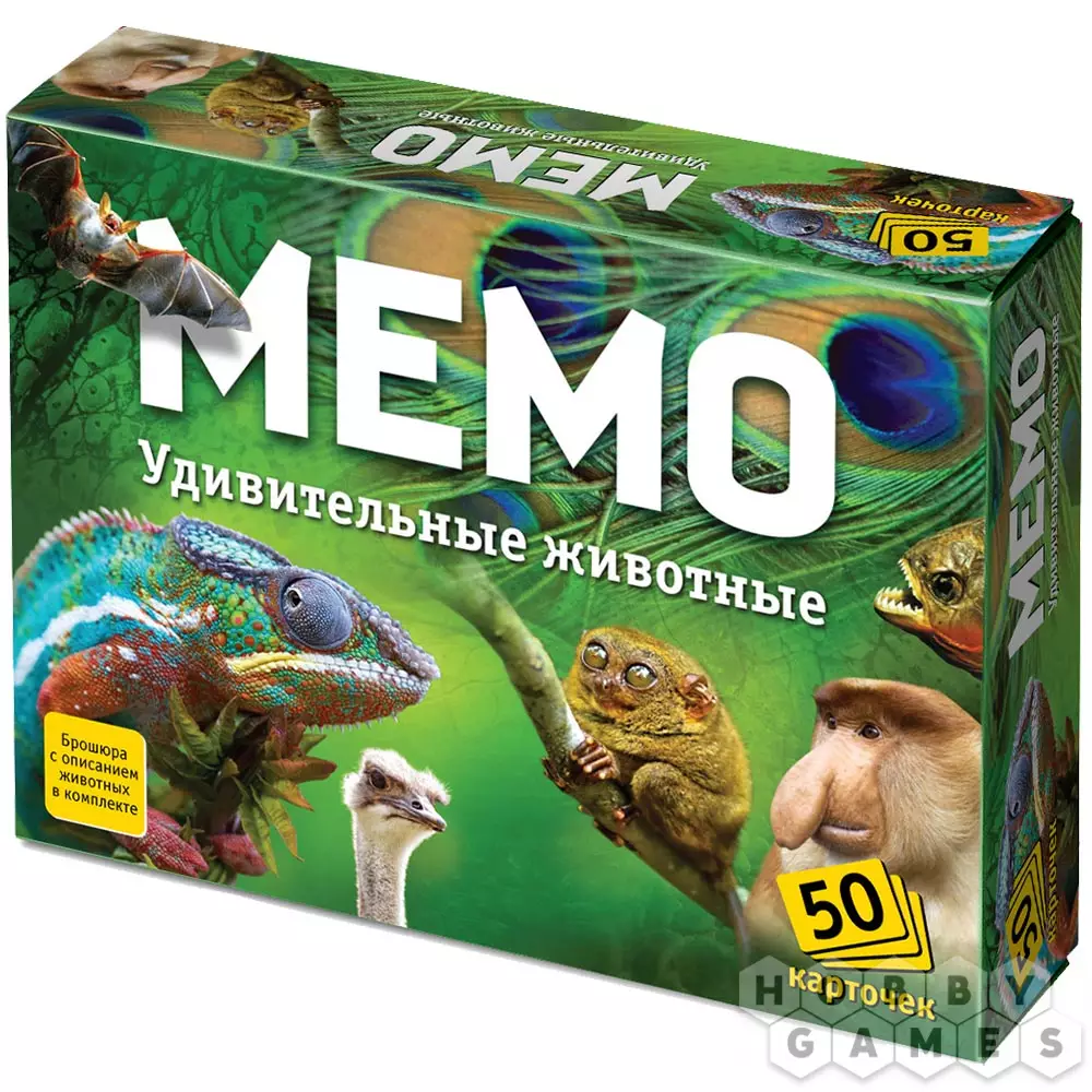В игре "Мемо "Удивительные животные" вы найдёте парные карточки с изображением различных представителей фауны, населяющие нашу планету. Звездонос, скунс, пиранья, игуана и броненосец – изучайте животный мир, сидя за игровым столом! Также в коробке вас ждёт брошюра с подробным рассказом про каждого животного, представленного в игре. Описание организма, среды обитания, образа жизни и многого другого – каждый сможет открыть для себя что-то новое!