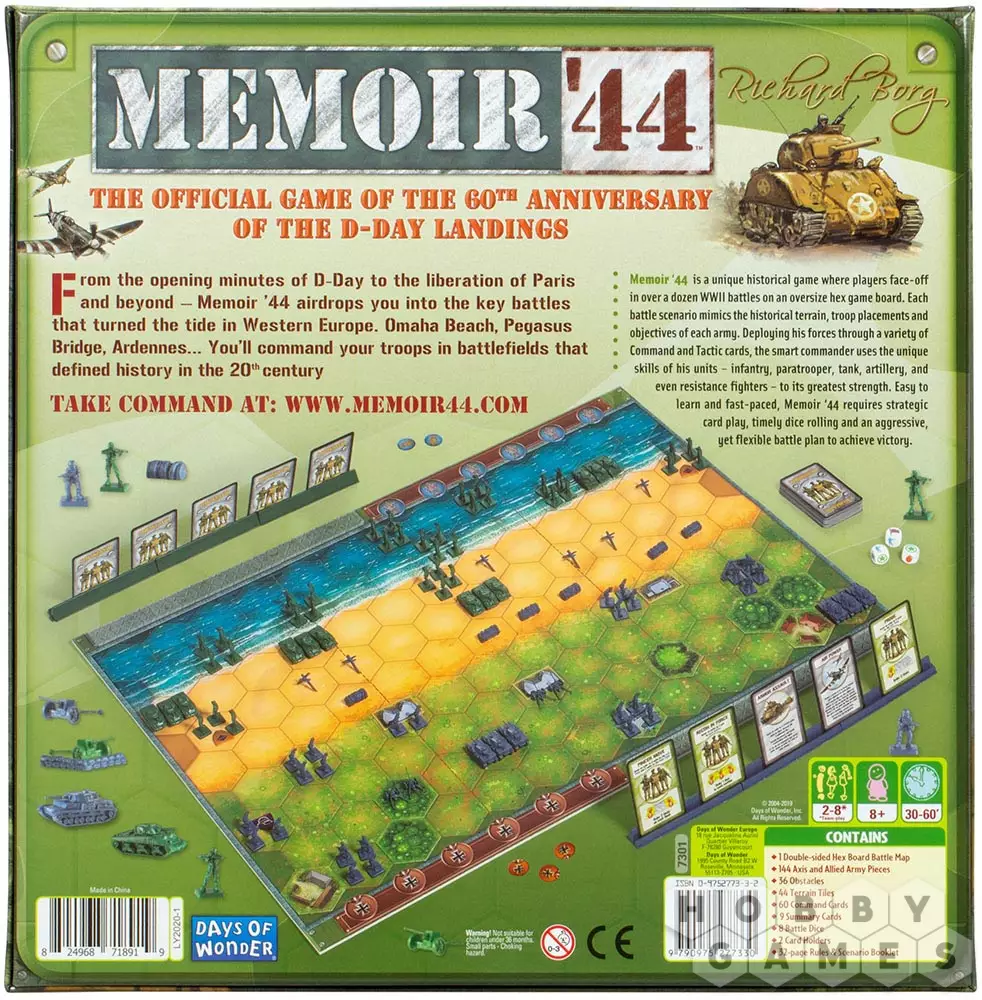 Уникальная историческая игра позволяет игрокам пройти полями десятков сражений заключительного этапа Второй Мировой. Каждый боевой сценарий с высокой степенью достоверности воспроизводит особенности поля битвы, начальную дислокацию войск, цели каждой противоборствующей стороны. Игрок должен умело маневрировать при помощи карт приказов и тактики, чтобы в полной мере воспользоваться уникальными навыками своих подразделений - пехотных, танковых, артиллерийских, десантных. В игре есть даже отряды антифашистского сопротивления. Для победы в «Memoir'44» потребуется расчет в применении карт, уверенность в бросках кубиков, напор и гибкость в осуществлении тактических планов. Простая в освоении, стремительная в развитии игра гармонично сочетает достоверность и сбалансированность классического варгейма с атмосферностью и доступностью настольных игр Days of Wonder.