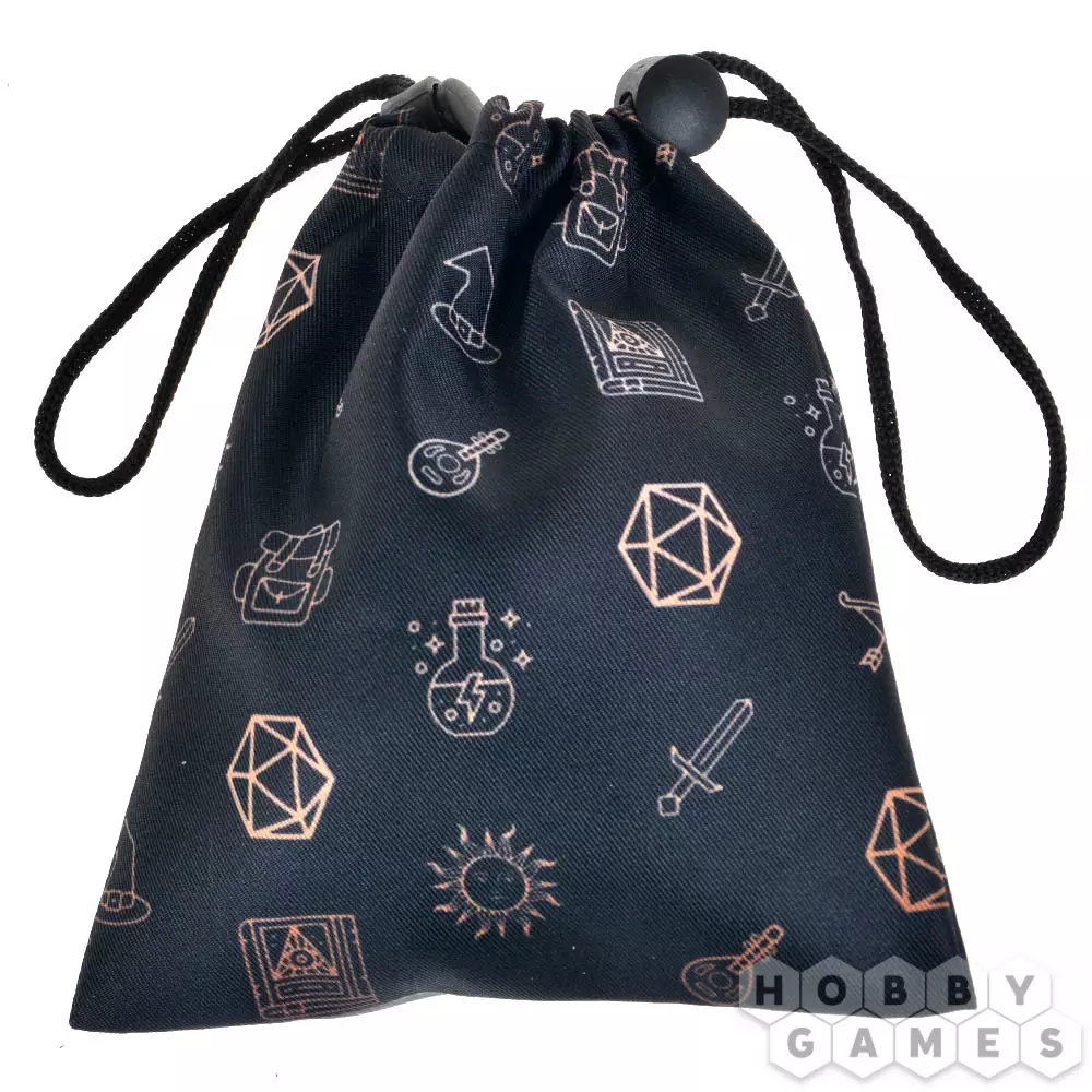 Стильный и очень вместительный мешочек из плотной ткани с классической завязкой идеально подойдёт для хранения любых игровых аксессуаров, будь то кубики, карты, фишки или жетоны. А ещё его можно использовать для хранения различных бытовых мелочей.