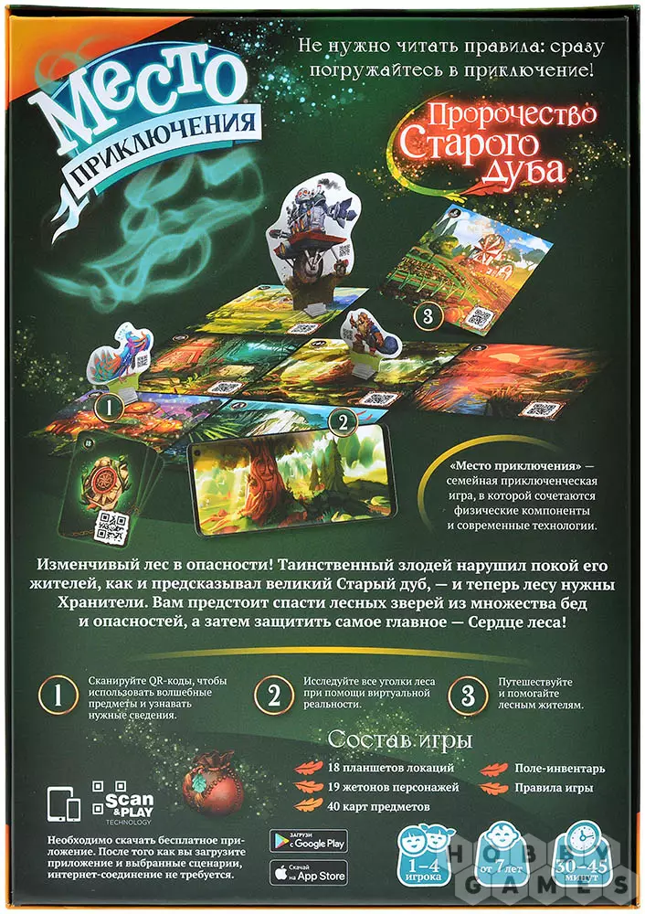 "Место приключения: Пророчество Старого дуба" – это увлекательное приключение для всей семьи, в котором гармонируют традиционные игровые компоненты и новейшие технологии. Вас ожидают:
