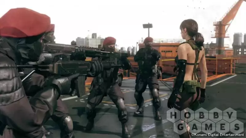 Metal Gear Solid V: The Phantom Pain ©2015 Konami Digital Entertainment. Published by Konami Digital Entertainment BV. Developed by Konami Digital Entertainment Co., Ltd. Powerd By Wwise © 2006 - 2015 Audiokinetic Inc. All rights reserved. This software uses specially-designed fonts created under license from Fontworks Inc. Fontworks and font names are trademarks or registered trademarks of Fontworks Inc.