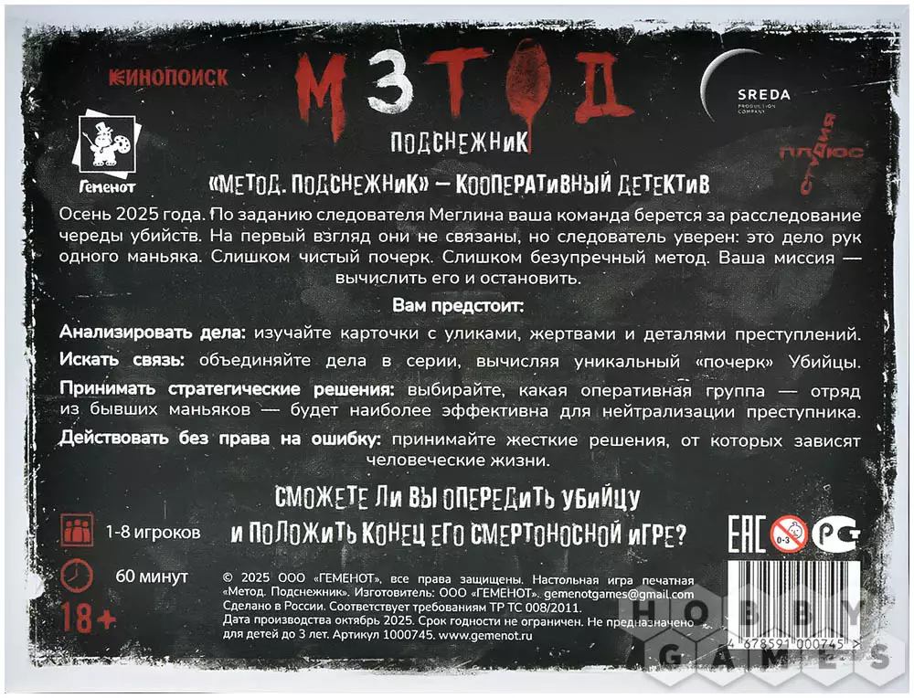 Этот проект создан для поклонников мрачного и интеллектуального сериала "Метод". Здесь вы станете частью команды, работающей по заданию самого Меглина. Вам предстоит пройти три ключевых этапа расследования.