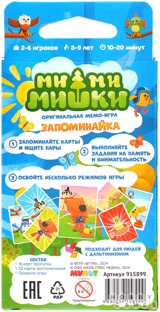 Следующий уровень "Запоминайка лайт" завязан на признаке, указанном на карте воспоминаний. Здесь у каждого игрока своя цель! Один будет искать птичек, другой арбузы, ну а третий, к примеру, клубничку! Если ребёнок справляется и с этим уровнем, то переходим к самому сложному – "Запоминайка". В нём игроки ищут пары карты с теми признаками, которые указаны на карточке воспоминаний каждого. Такая игра понравится детям, способным к запоминанию большого объёма информации.