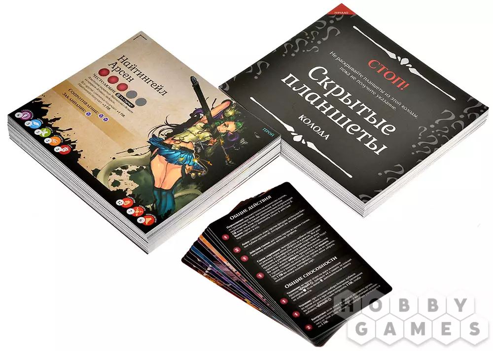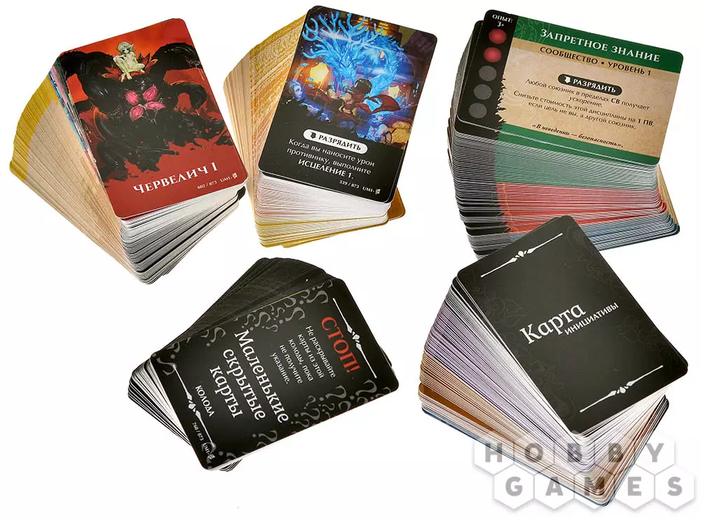 Размер карт: 69x119 мм (рекомендуются протекторы из данного раздела, 12 шт.)