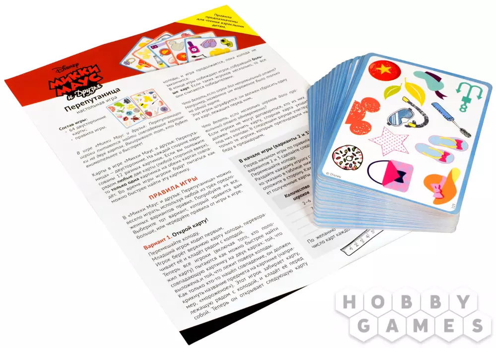 "Микки Маус и друзья: Перепутаница" – простая, весёлая и динамичная карточная игра на внимательность и скорость реакции для детей и их родителей. Игра предлагает различные правила, которые мы разберём ниже, но общий принцип предельно прост – мы будем пытаться найти совпадающие картинки на двух картах. За простотой скрывается достаточно непростая игра для неподготовленных умов! Но со временем вы всему научитесь, а игра не только будет радовать вас игровым процессом, но и разовьёт полезные навыки!