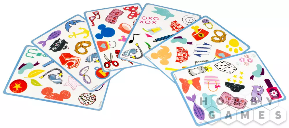 Карты в игре двухсторонние, а на каждой стороне нарисовано по 12 предметов. Игра устроена таким образом, что на любых двух картах, любой стороной вверх, обязательно есть один повторяющийся предмет, но только один. Ваша цель – отыскать его. Игра предлагает набор из трёх различных версий правил, но вы можете развить их или даже придумать свои: