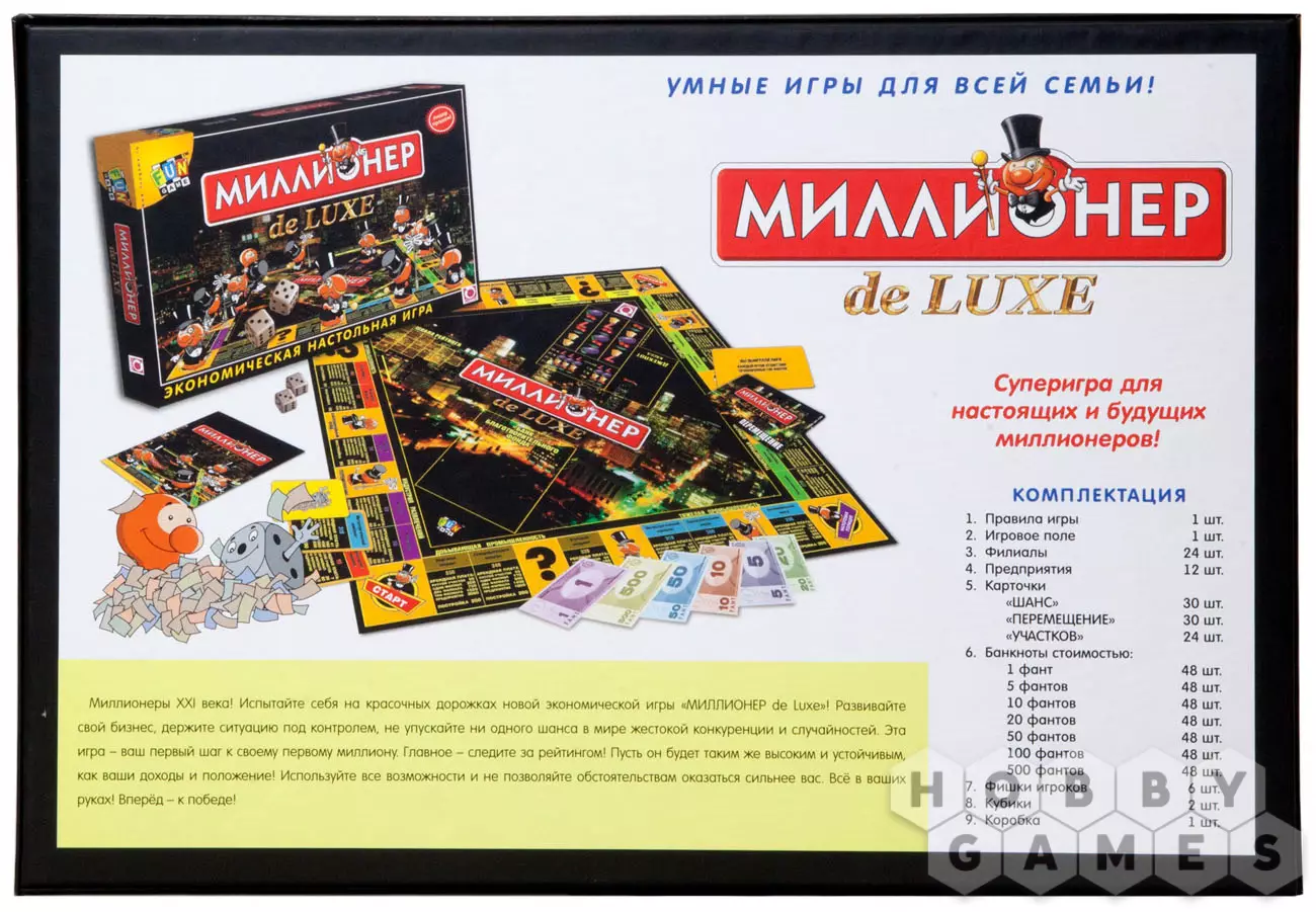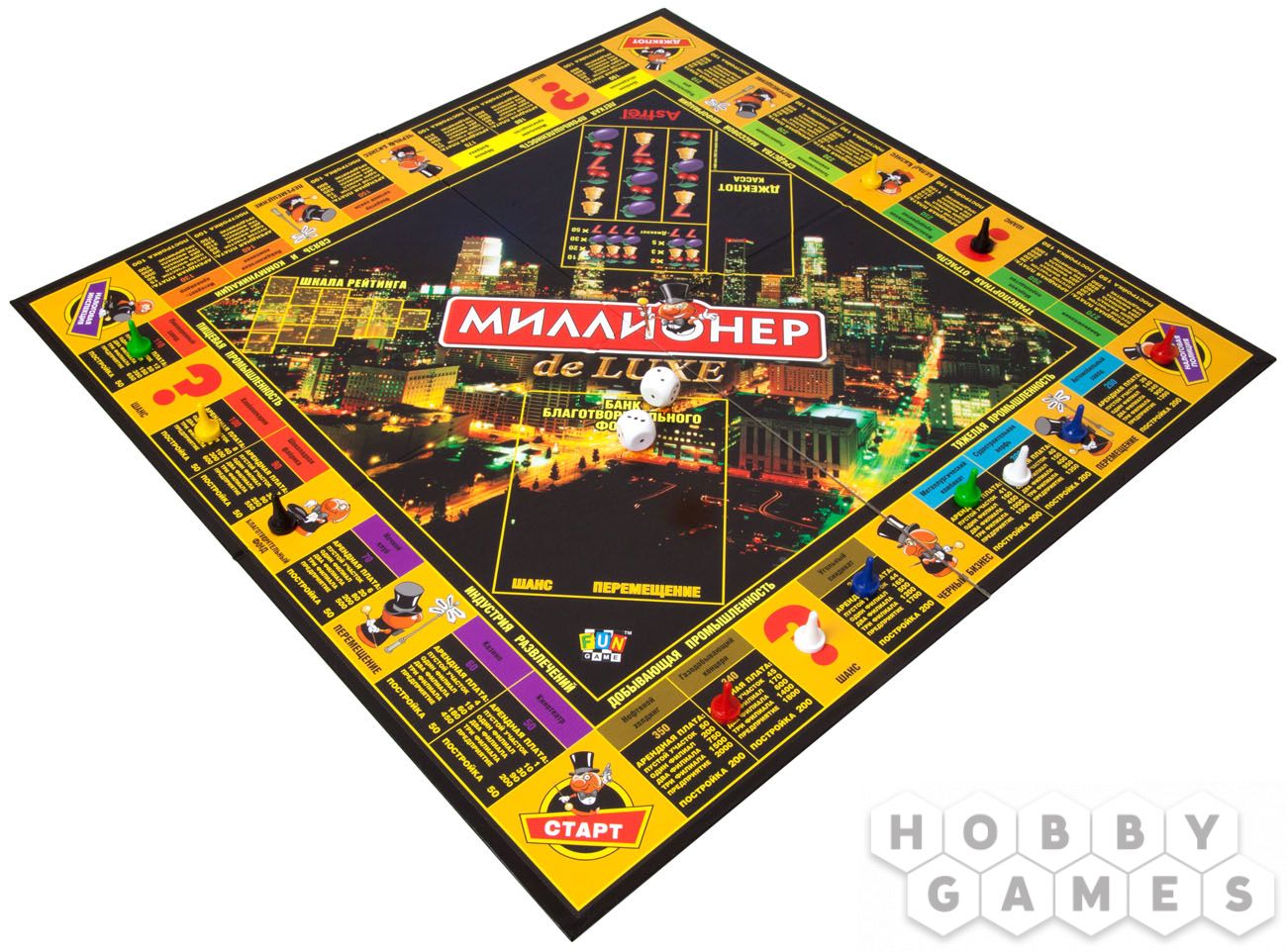 До полной победы одного игрока. Классическая цель настольной игры Миллионер De Luxe – создать монополию и разорить конкурентов.. Играть можно как на повышение – пока фишка игрока не доберется до вершины, либо на понижение – пока не останется только один игрок на поле.