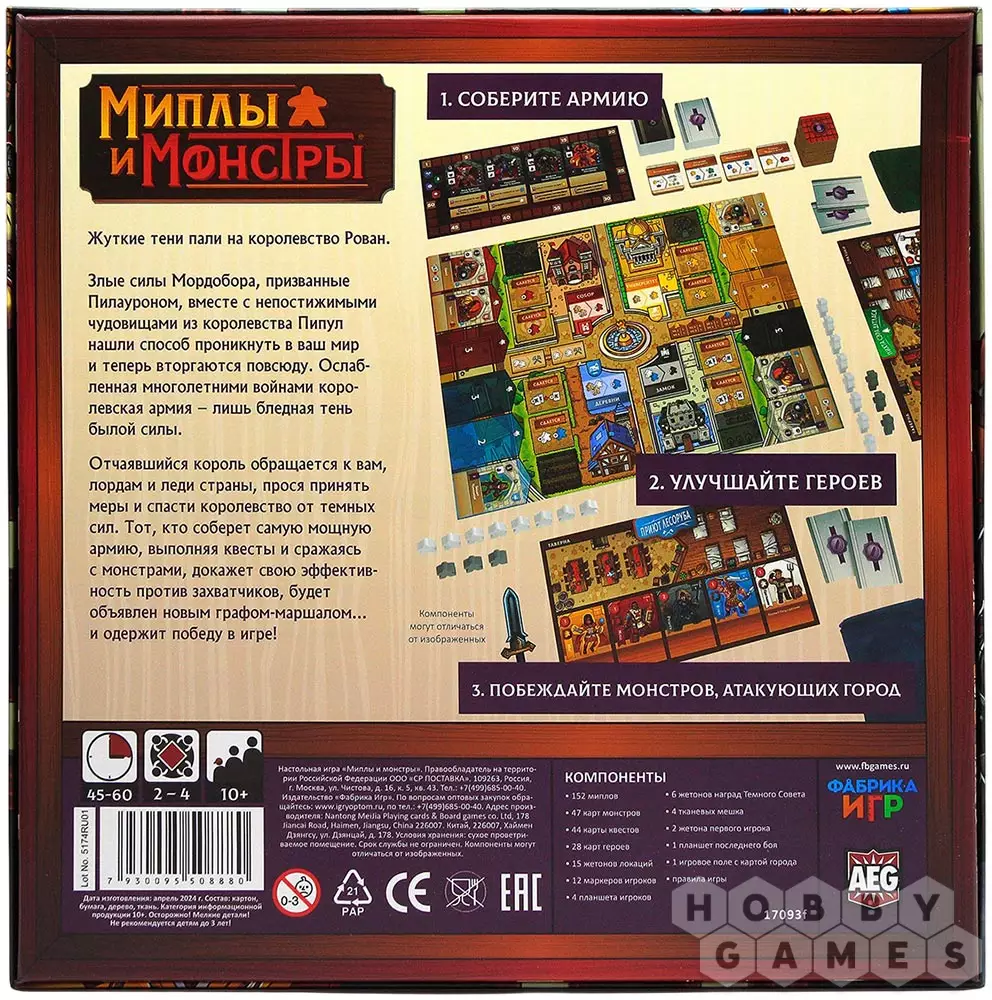 "Миплы и монстры" – это настольная игра, в основе которой лежит механика "мешкостроя". Что это за монстр? Нечто очень похожее по сути своей на "колодострой", только собирать вы будете мешок, наполняя его разнообразными миплами – от простых крестьян до могучих паладинов и хитроумных магов. Каждый новый боец делает вашу армию сильнее, а прокачка героев открывает уникальные способности. Стройте здания, выполняйте задания и побеждайте монстров, чтобы зарабатывать победные очки. Но главное испытание ждёт впереди – финальная битва с Тёмным Советом, где решится судьба королевства!