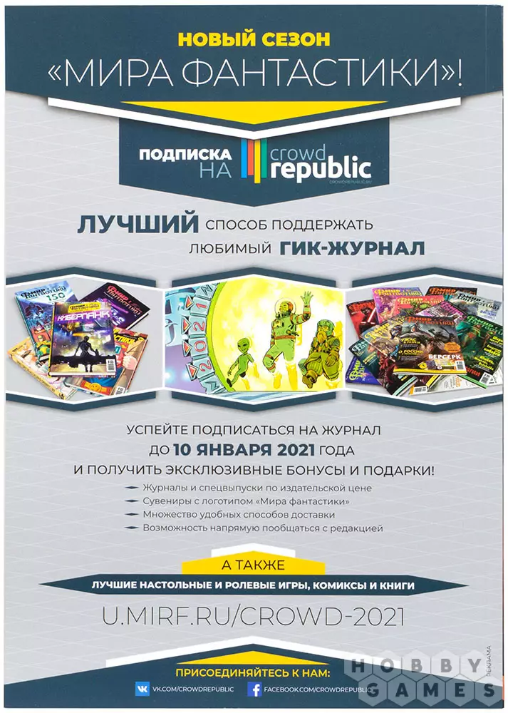"Мир фантастики" – легендарный журнал о фэнтези и фантастике во всех проявлениях. Он рассказывает о фантастических книгах, кино и сериалах, компьютерных и настольных играх, комиксах и аниме, ролевых системах и науке. О творцах и их героях, о вселенных и художниках-фантастах, о мифологии и футурологии. О Толкине и Лавкрафте, "Звёздных войнах" и Marvel, "Ведьмаке" и "Игре престолов". О классике и новинках. Под обложкой каждого номера вас ждёт целый мир – Мир фантастики!