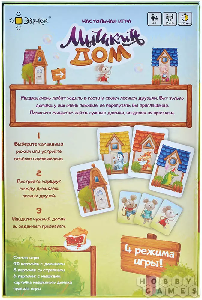 Какой мышонок откажется от чаепития с земляничными пирогами в компании лесных друзей? Глаза разбегаются от количества приглашений! А домики у зверят чересчур похожи, как бы их не спутать... Детская игра "Мышкин дом" – это серия мини-игр для развития логики, или просто весёлого семейного вечера в компании крошек-мышат. Играть можно как в команде, так и с элементами соревнования для детей старшего возраста. Ребёнку будет интересно разглядывать и изучать карточки забавных жителей гостеприимной долины, и их крошечные, но такие уютные домики!