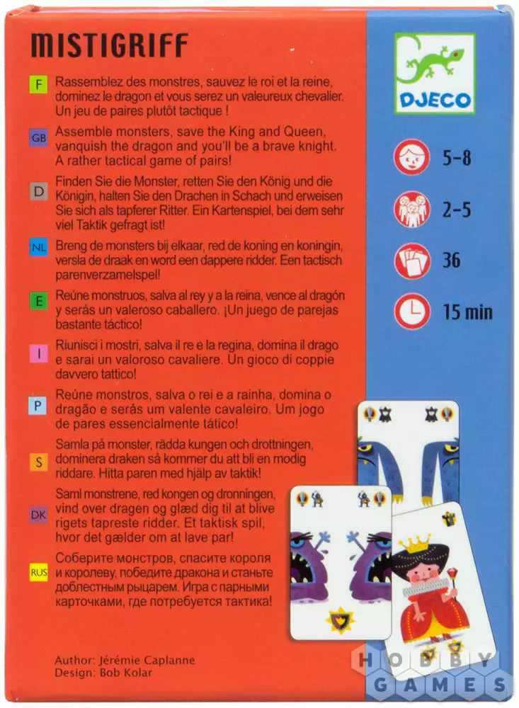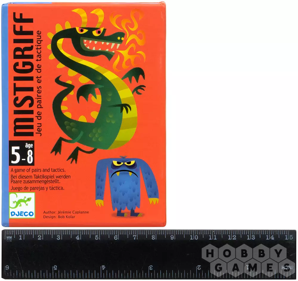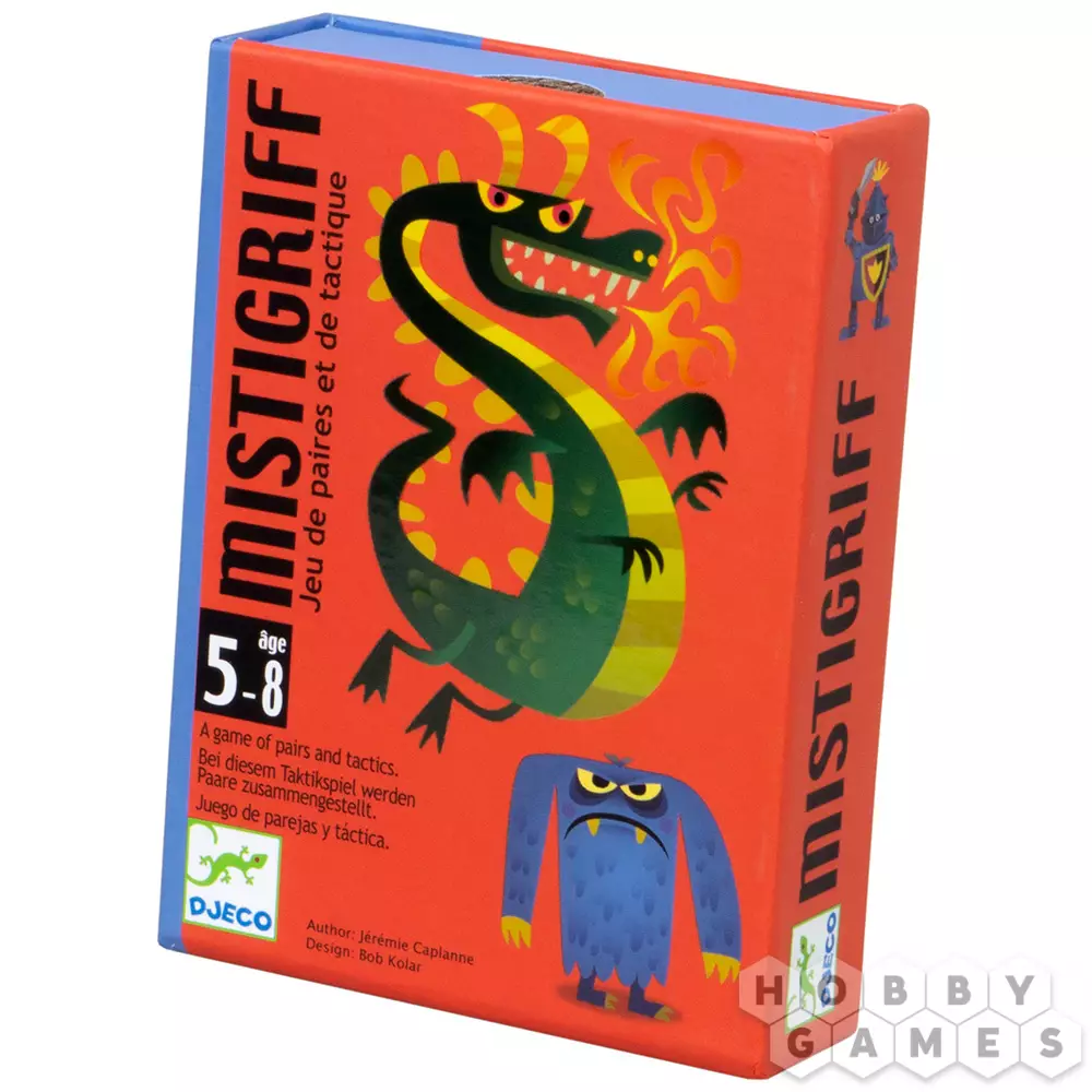 В стратегической детской игре Mistigriff игрокам предстоит сражаться с драконом Мистигрифом и монстрами, пользоваться волшебной силой и получать очки храбрости. В игре два вида карт: с башенкой и с мечами. Карты с башенкой остаются на руках до конца партии, а карты с мечами участвуют в игре. Каждый ход игроки берут вслепую карту у соседей справа и пытаются найти ей пару среди своих карт. Если пару найти удалось, то если на одной из них есть волшебная сила – её можно применить. Если пару найти не удалось, то ходит следующий игрок. Партия завершается, когда у всех игроков на руках заканчиваются карты с мечами. После этого подсчитываются очки храбрости и побеждает тот, у кого их больше. Игра развивает мышление, внимательность и воображение.