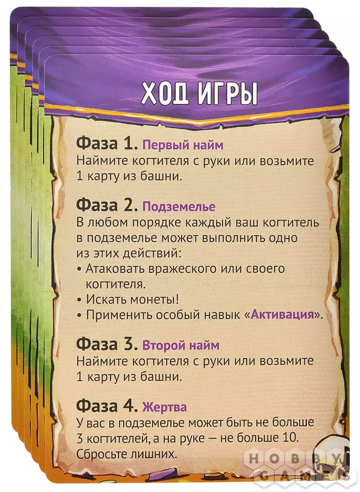 В начале хода вы укрепляете свою команду когтителей, выкладывая новых помощников из руки. Каждого такого союзника нужно обеспечить запасом здоровья, отмечая его специальными жетонами-сердечками. Вместо пополнения команды можно взять дополнительные карты из основной колоды – выбор зависит от текущей ситуации и вашей стратегии.