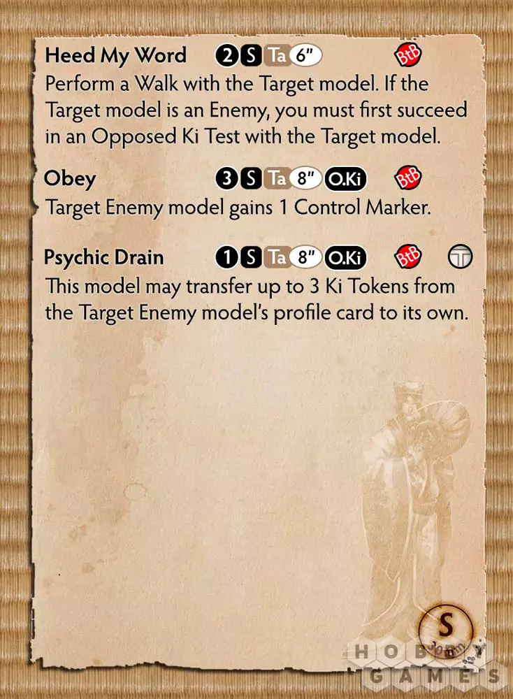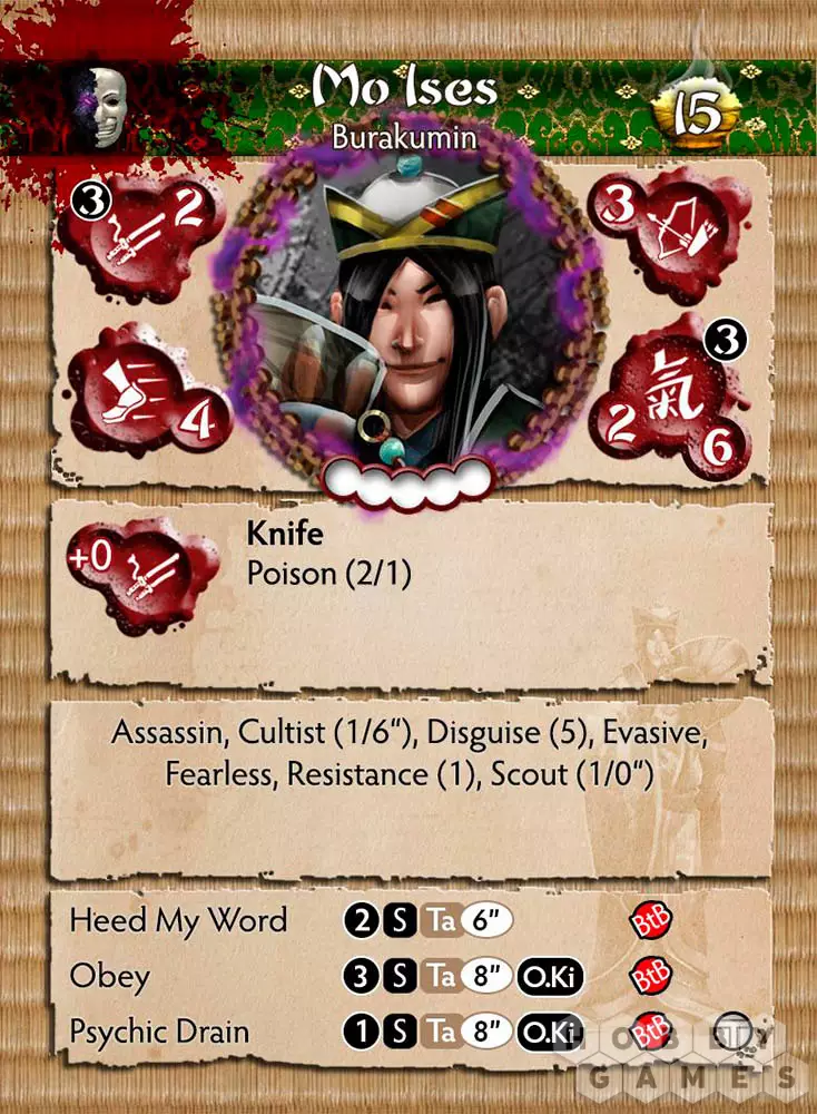 Как Mo Ises оказался втянут в культ, неизвестно. Несмотря на то, что он смертоносный воин, его противники часто неправильно оценивают его и не подозревают об угрозе, которую он представляет, пока не почувствуют холод стали, пронзившей плоть. Каждая сделка, которую он заключал с Yurei, усиливалась его репутацией.