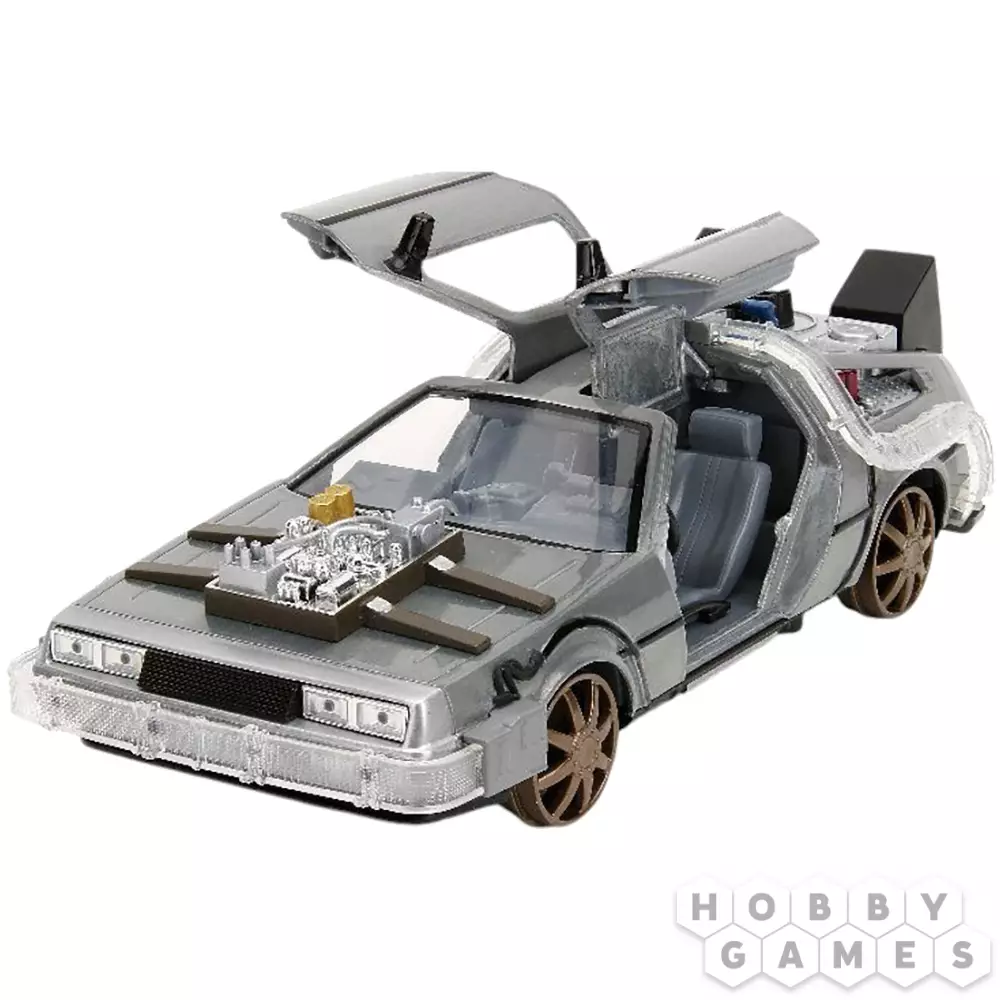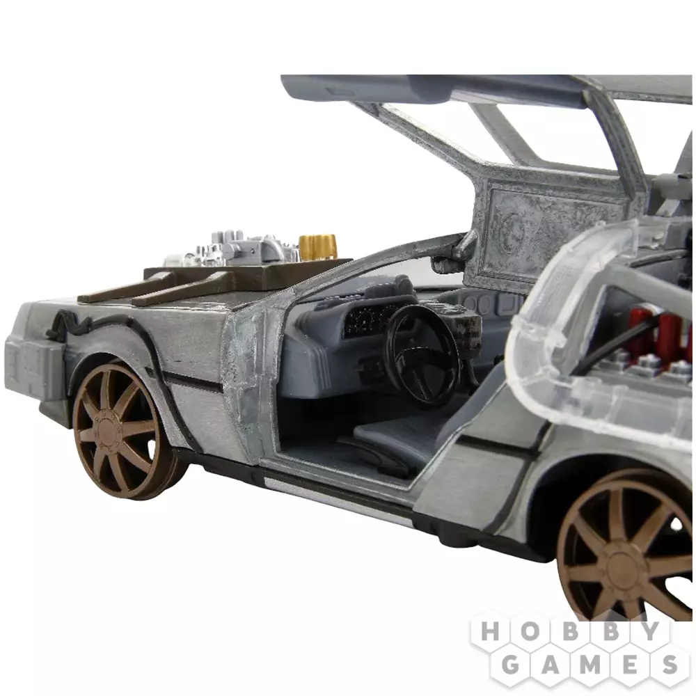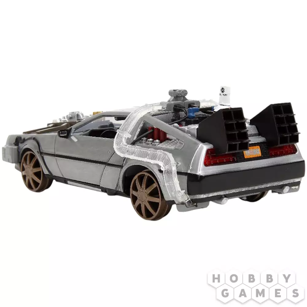 Эта модель в масштабе 1:24 от Hollywood Rides представляет собой легендарный автомобиль DeLorean DMC-12, который фигурирует в кинотрилогии "Назад в будущее". Конкретно данная модель является копией автомобиля из третьей части и соответствует внешнему виду средства перемещения во времени Дока и Марти. Остерегайтесь индейцев, пробитый бензобак, как выяснилось, не сулит ничего хорошего!