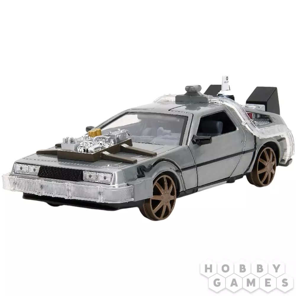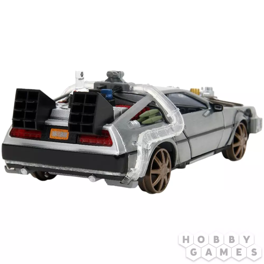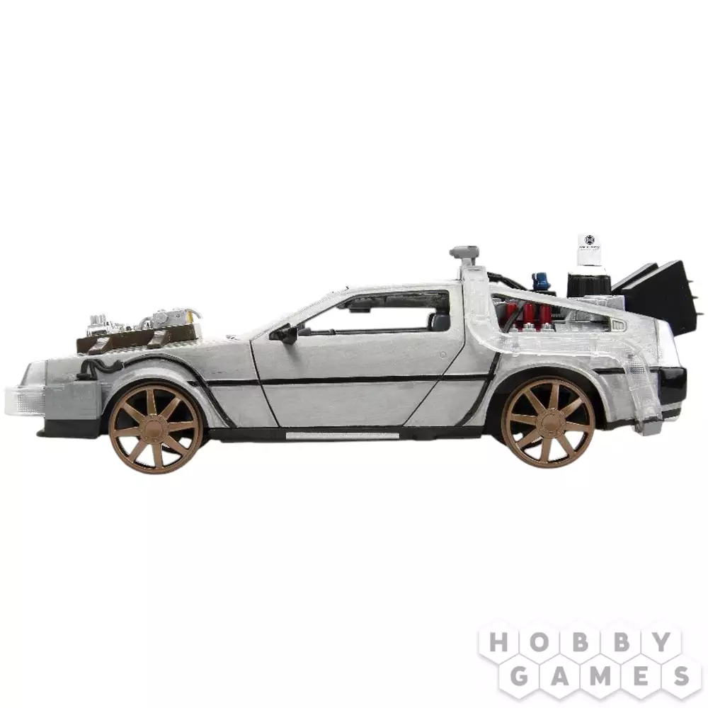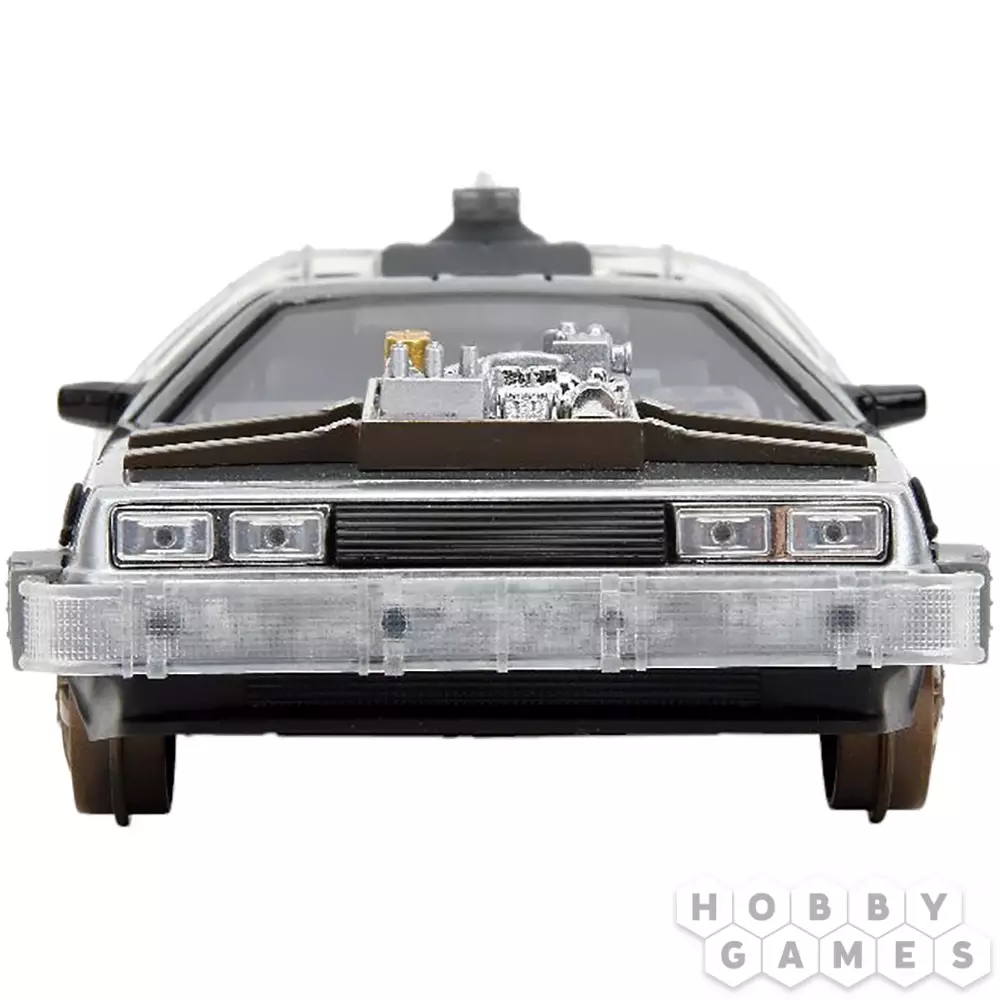 Эта модель в масштабе 1:24 от Hollywood Rides представляет собой легендарный автомобиль DeLorean DMC-12, который фигурирует в кинотрилогии "Назад в будущее". Конкретно данная модель является копией автомобиля из третьей части и соответствует внешнему виду средства перемещения во времени Дока и Марти. Остерегайтесь индейцев, пробитый бензобак, как выяснилось, не сулит ничего хорошего!