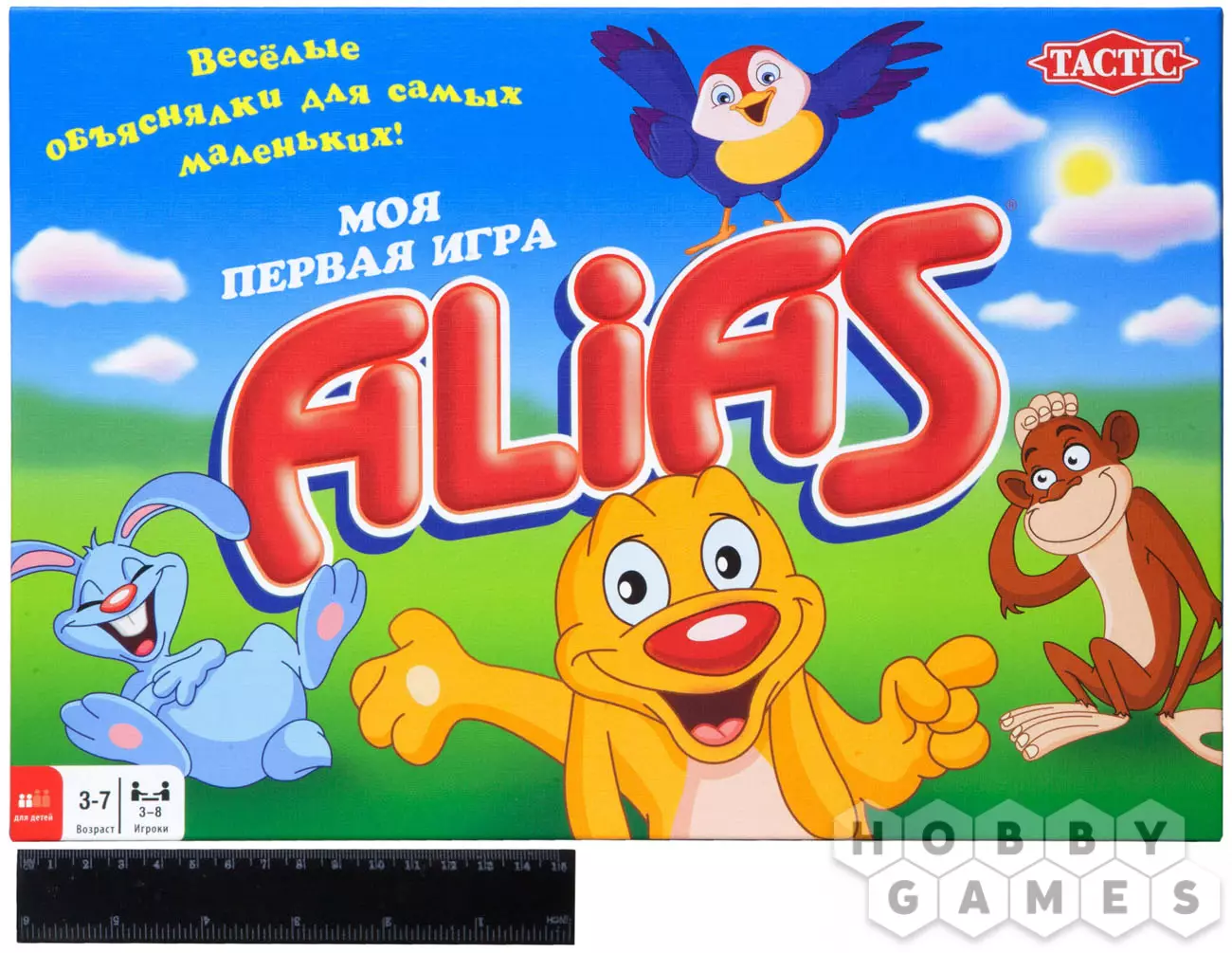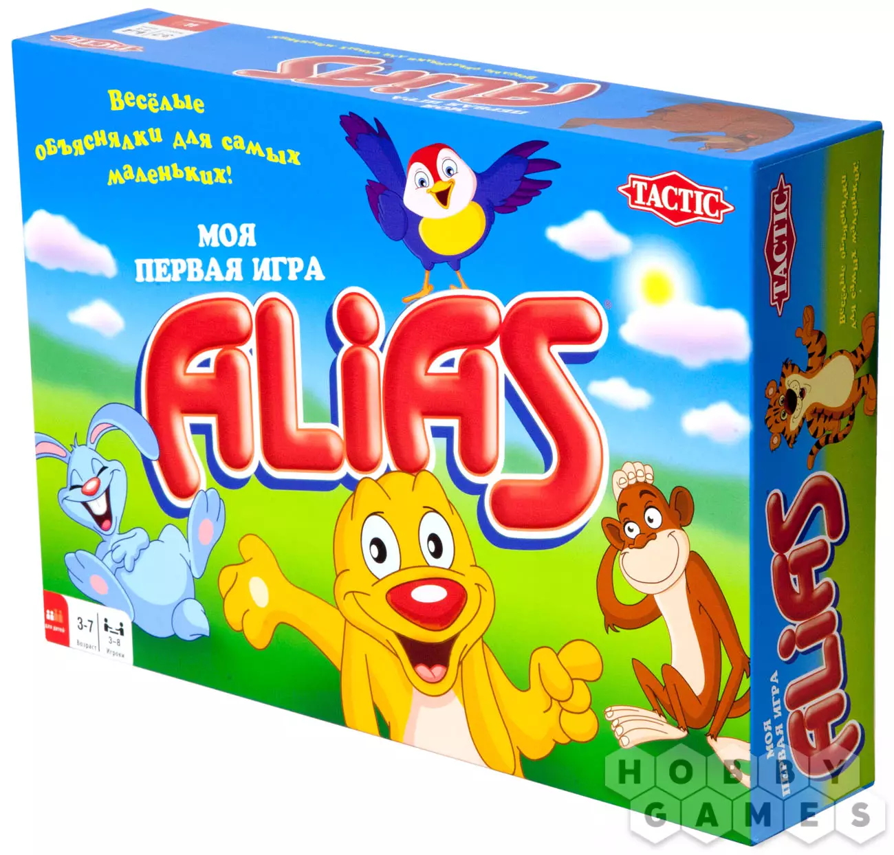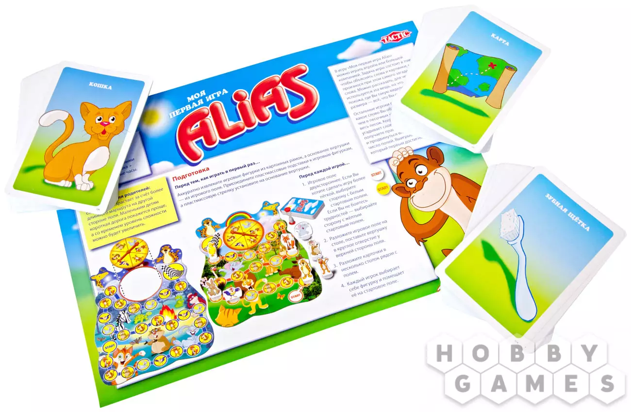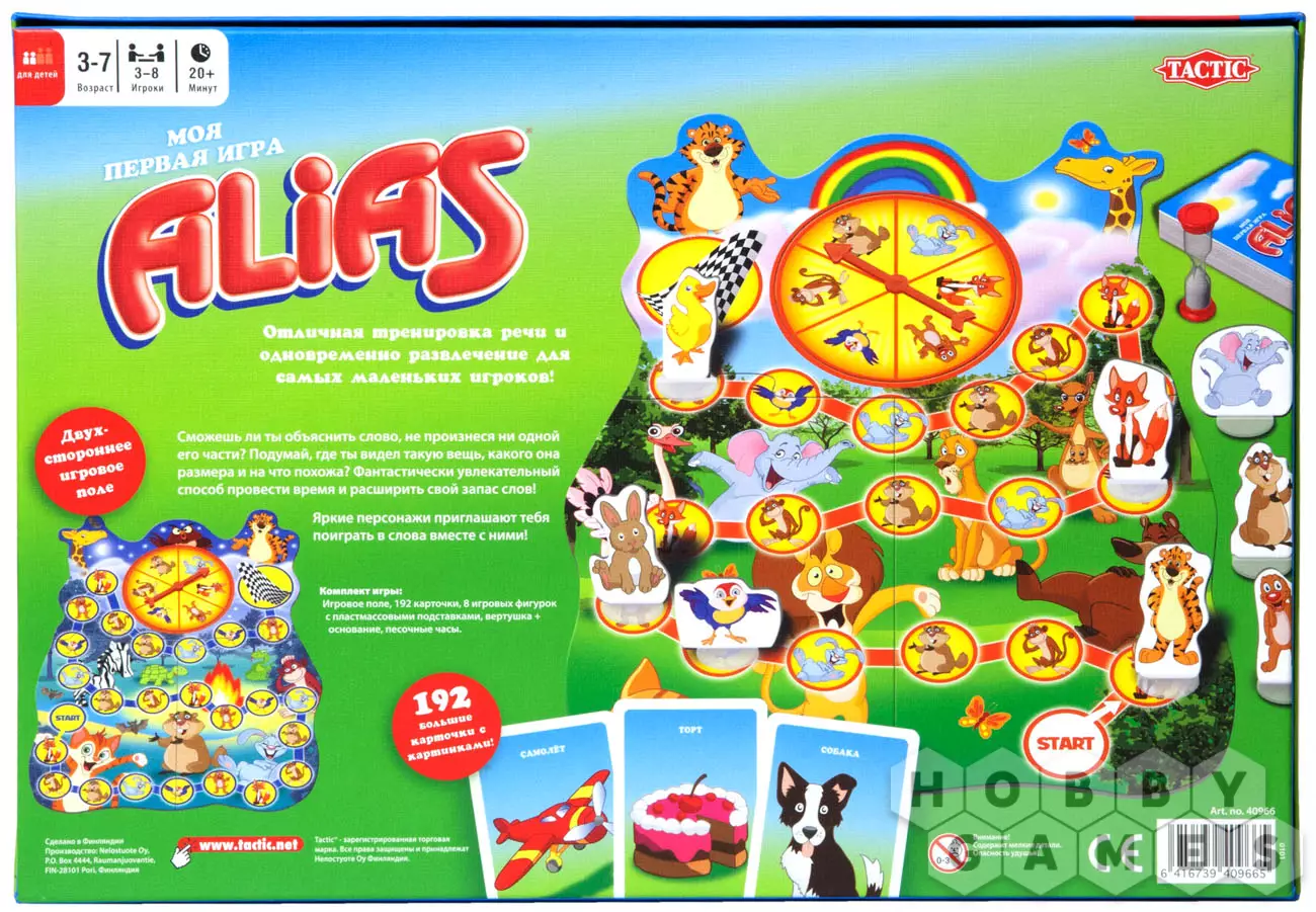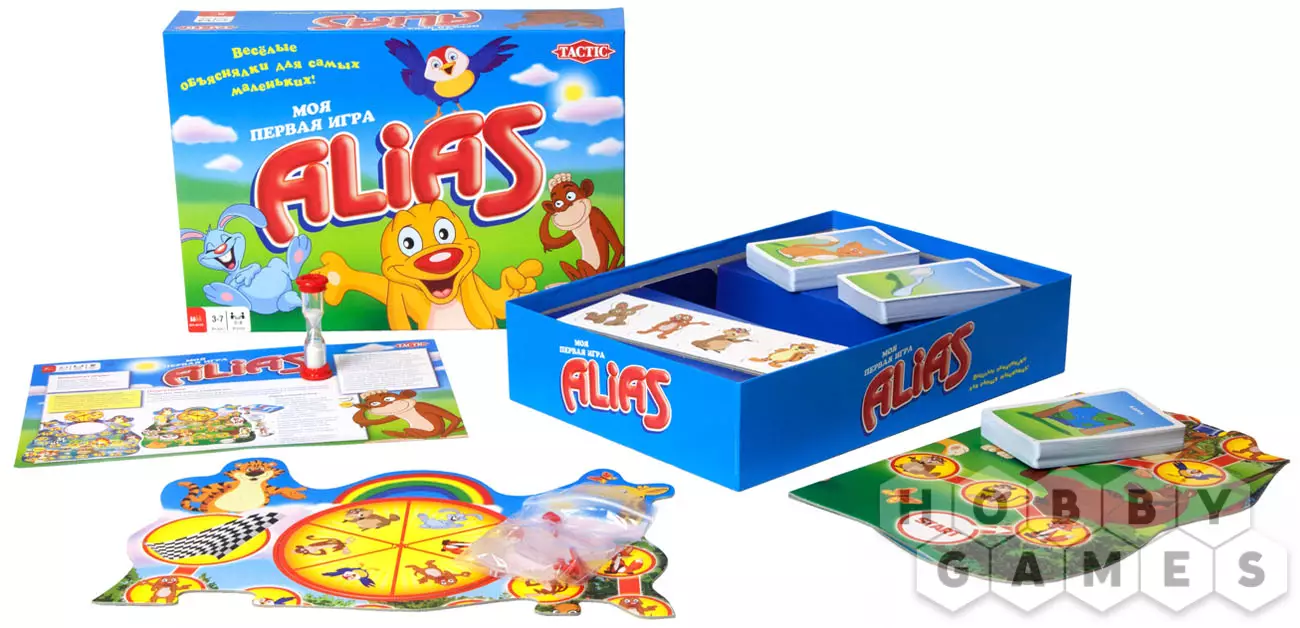 Теперь даже самые маленькие любители настольных игр смогут сыграть в «Моя Первая Игра Alias». Выбирайте понравившегося персонажа и отправляйтесь в путь по дневной дорожке (лёгкой) или, если вы конечно не боитесь темноты, по ночной дорожке, немного более сложной. Рулетка с изображениями милых животных поможет вам найти правильный путь к победе. На карточках в игре обозначено одно слово, которое продублировано красочной картинкой. Готовы ли вы отправиться по неизведанным тропинкам? Тогда в путь!