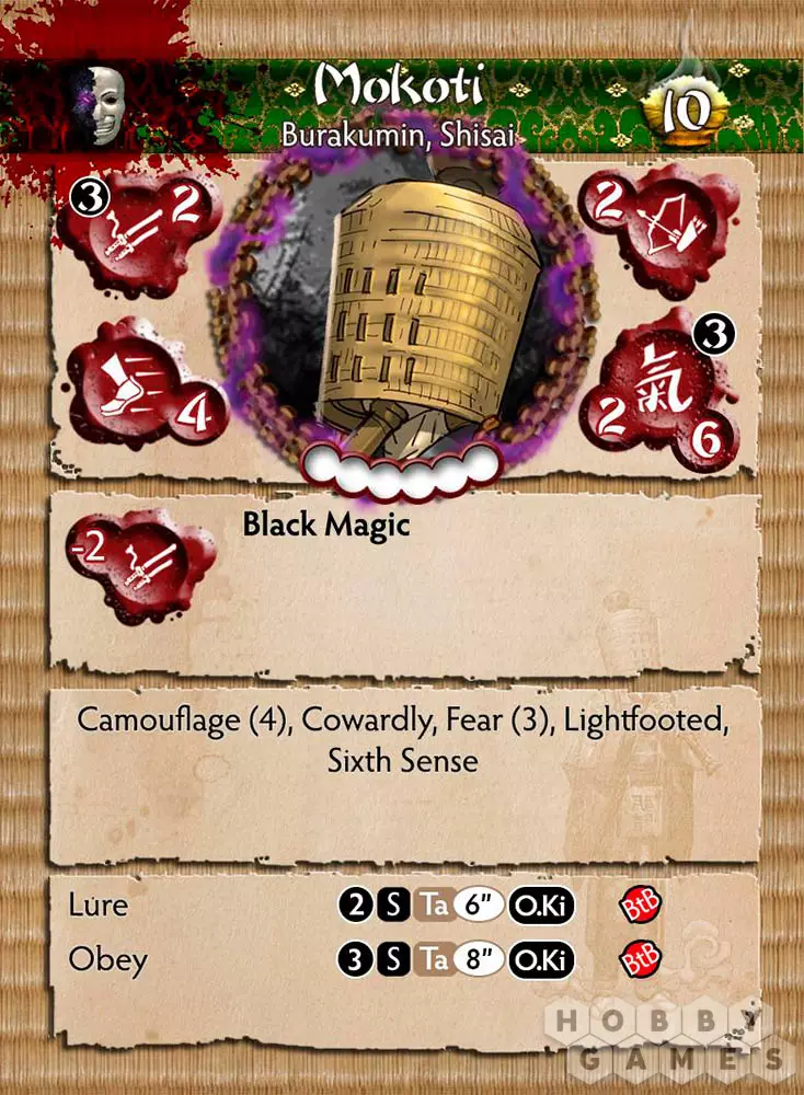 Монахи Komuso обычно радуют жителей деревни и крестьян своим появлением. Когда эти кочевые музыканты приезжают в город, у рабочих появляется возможность оставить инструменты, посидеть и послушать приятную музыку, за которую они накормят труппу тёплой едой и предоставят кров. Mokoti поддался соблазнительному обаянию Yurei, и хотя его игра изысканна, его мотивы гораздо темнее. Нежная и лёгкая музыка скрывает тьмы извращенный и порочный шепот, доносящийся из тьмы и подчиняющий разум слабых и уязвимых его воле.