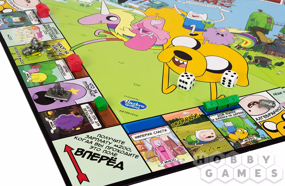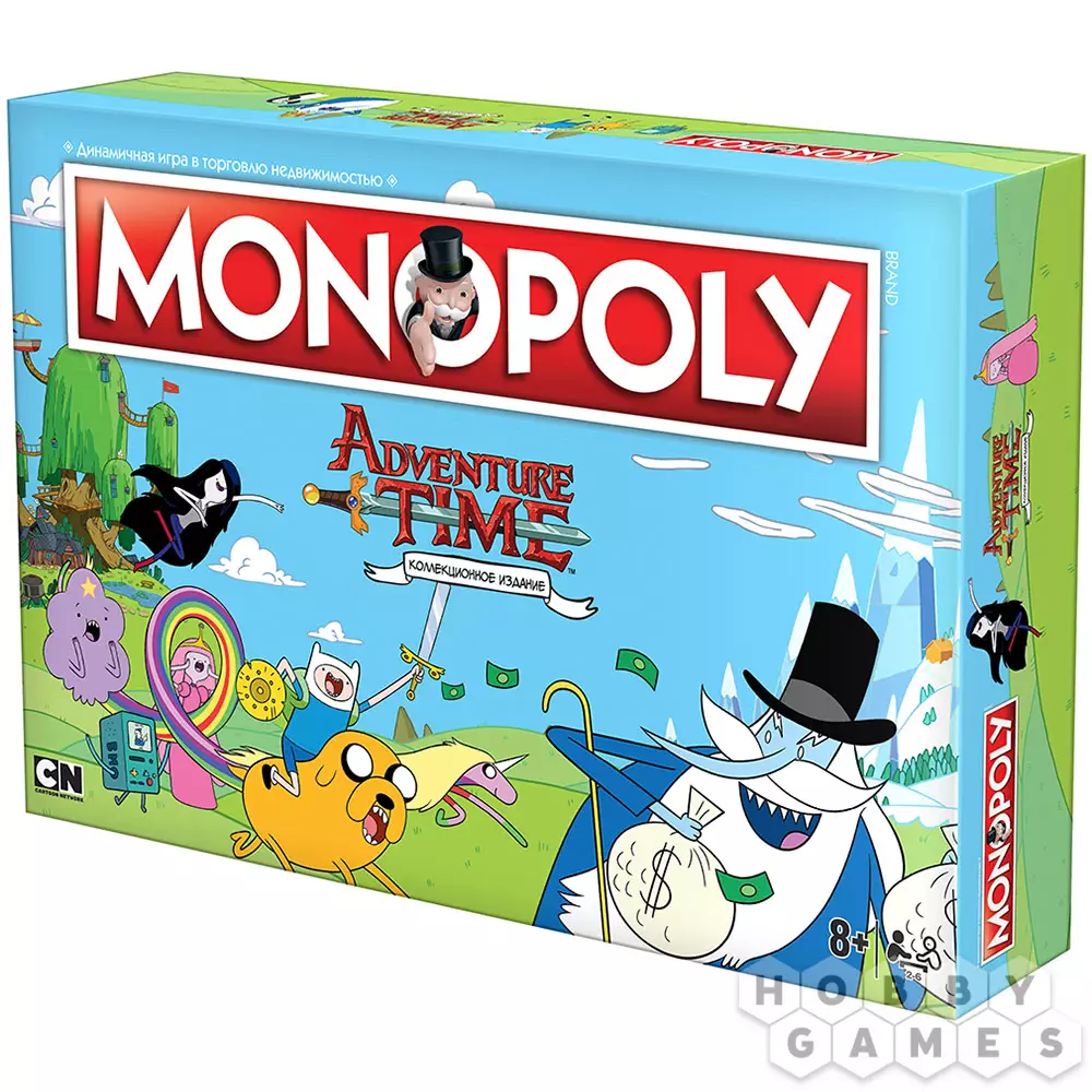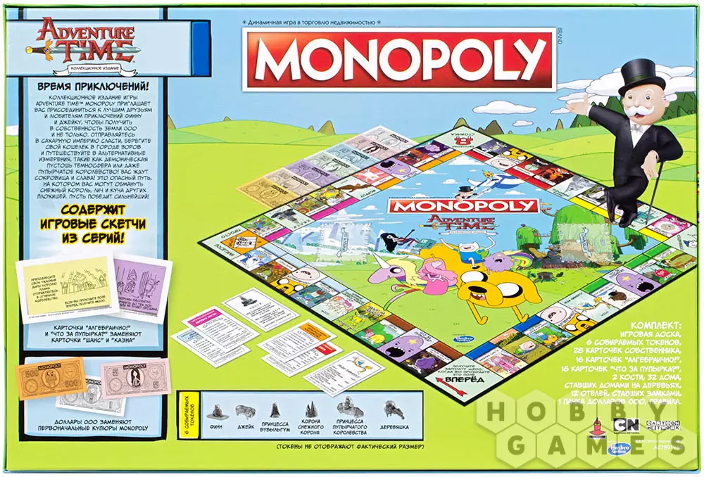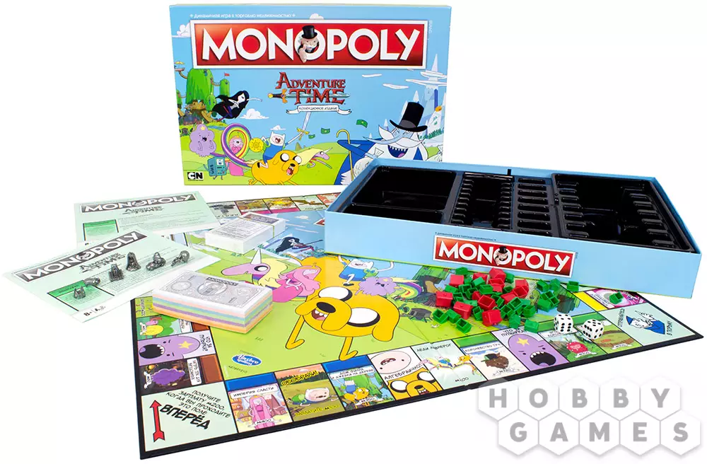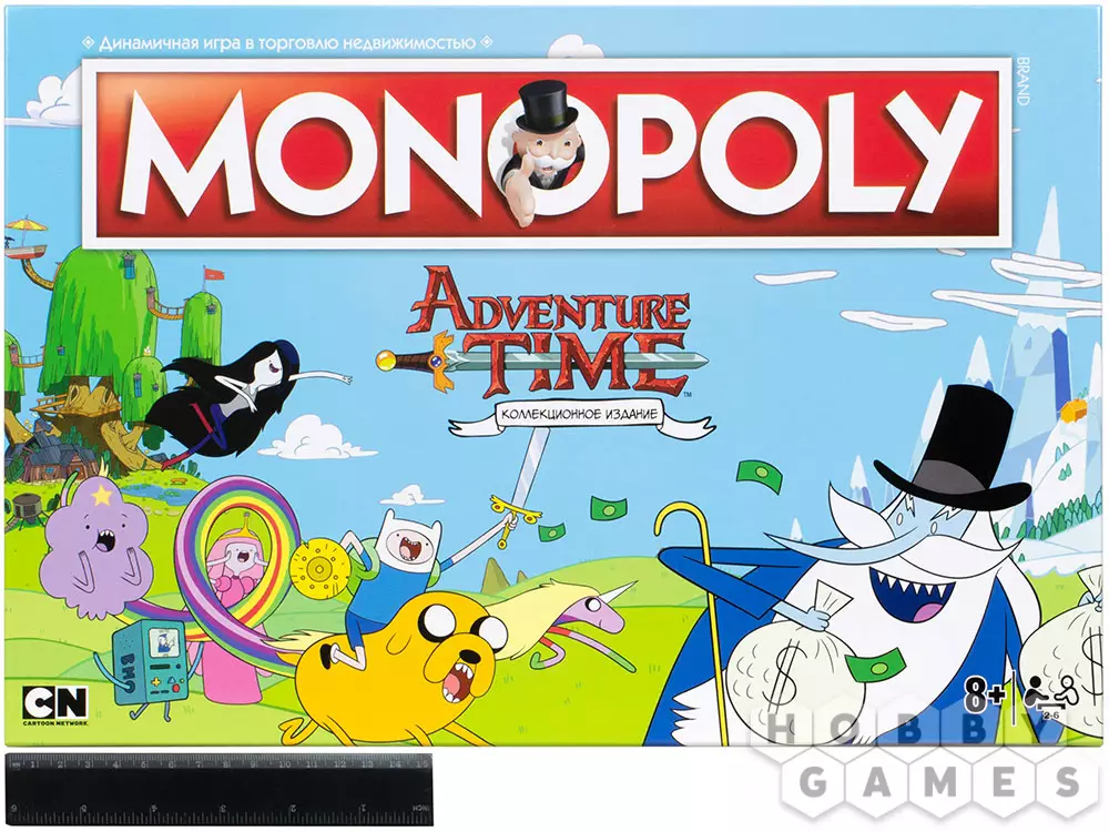 Коллекционное издание монополии по вселенной Adventure Time™ приглашает вас присоединиться к Джейку и Финну, лучшим друзьям и любителям приключений, чтобы получить в собственность Земли Ооо. Вас ждут сокровища, слава и фирменный юмор мультсериала "Время приключений".