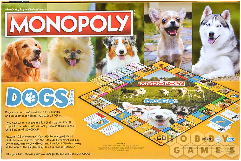 Monopoly: Dogs – это та самая нотка безумия, которой не хватало всем собачникам! Для маленьких любителей мокроносых питомцев это идеальный способ познакомиться с классической монополией. Собаки – преданные друзья человека на всю жизнь. С ними всегда приятно провести время, ведь четвероногие полны любви, веселья и радости! Игра теперь просто обворожительна и порадует вас разнообразием пород, вкусняшек и команд!