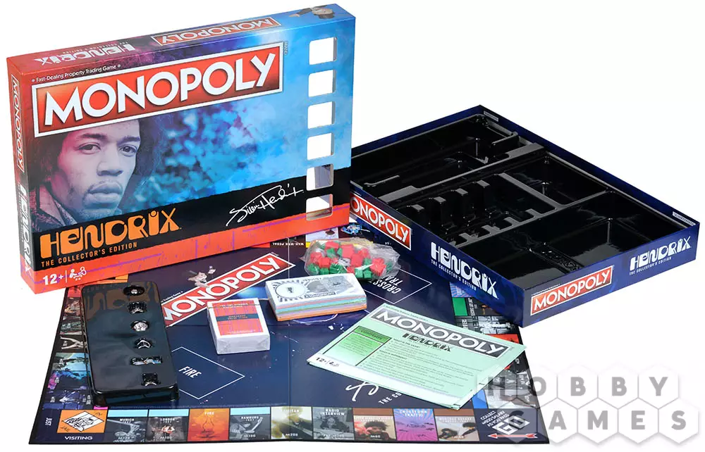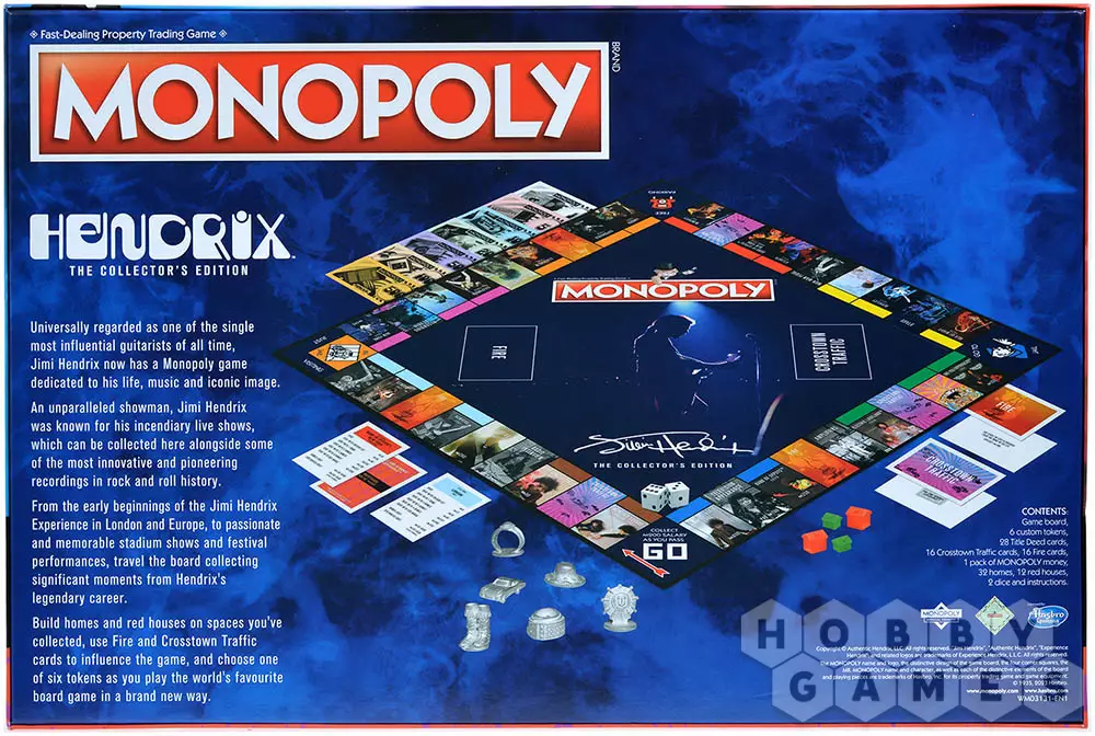 Погрузитесь в атмосферу рока прошлого века в этой уникальной версии Монополии, посвящённой легенде гитары – Джими Хендриксу. Игровое поле станет вашим путеводителем по важным моментам из жизни этого великого артиста, начиная с его скромных начинаний в подвале на улице Монтегю, и заканчивая выступлениями перед огромными толпами и записью лучших рок-альбомов в истории.