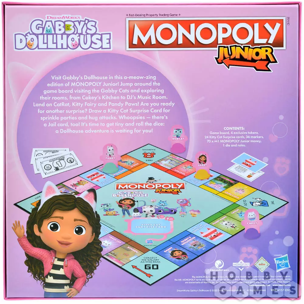 Monopoly Junior: Gabby's Dollhouse – это увлекательная вариация всем известной экономической игры, специально разработанная для маленьких игроков. В этой версии дети отправятся в захватывающее путешествие по миру мультсериала "Кукольный домик Габби". Вместе с главной героиней и её весёлыми питомцами они исследуют таинственные уголки кукольного домика и встретятся с милыми персонажами.