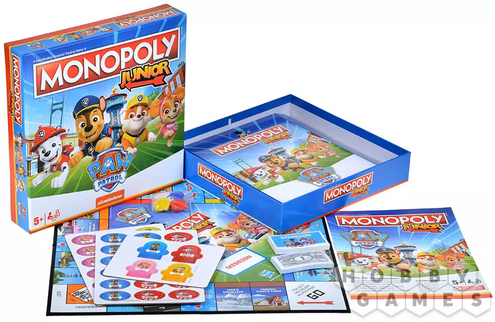 Monopoly Junior: Paw Patrol – это новая версия известной экономической игры адаптированная для самых юных игроков по мотиву мультфильма “Щенячий патруль”. С этой настолкой дети смогут отправиться в приключение по городу и его окрестностям, выбрав фигурку одного из щенков-спасателей – Гонщика, Маршалла, Скай или Крепыша!