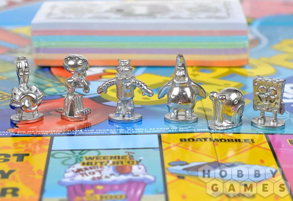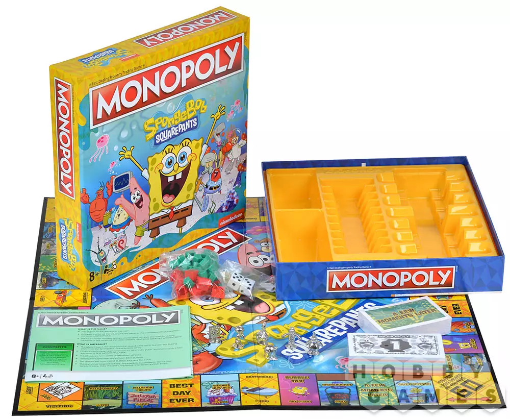 Знаменитая игра "Монополия" вдохновилась безумным мультсериалом "Губка Боб Квадратные Штаны". В этом наборе вы найдёте несколько жетонов с вашими любимыми персонажами: от беззаботного Губки Боба до непокорного Сквидварда, от весёлого Патрика до амбициозной Сэнди. Начинайте игру и покупайте любимые локации: домик Губки Боба или Патрика, захудалый ресторанчик Планктона или может вам повезёт завладеть самим "Красти Крабом"!