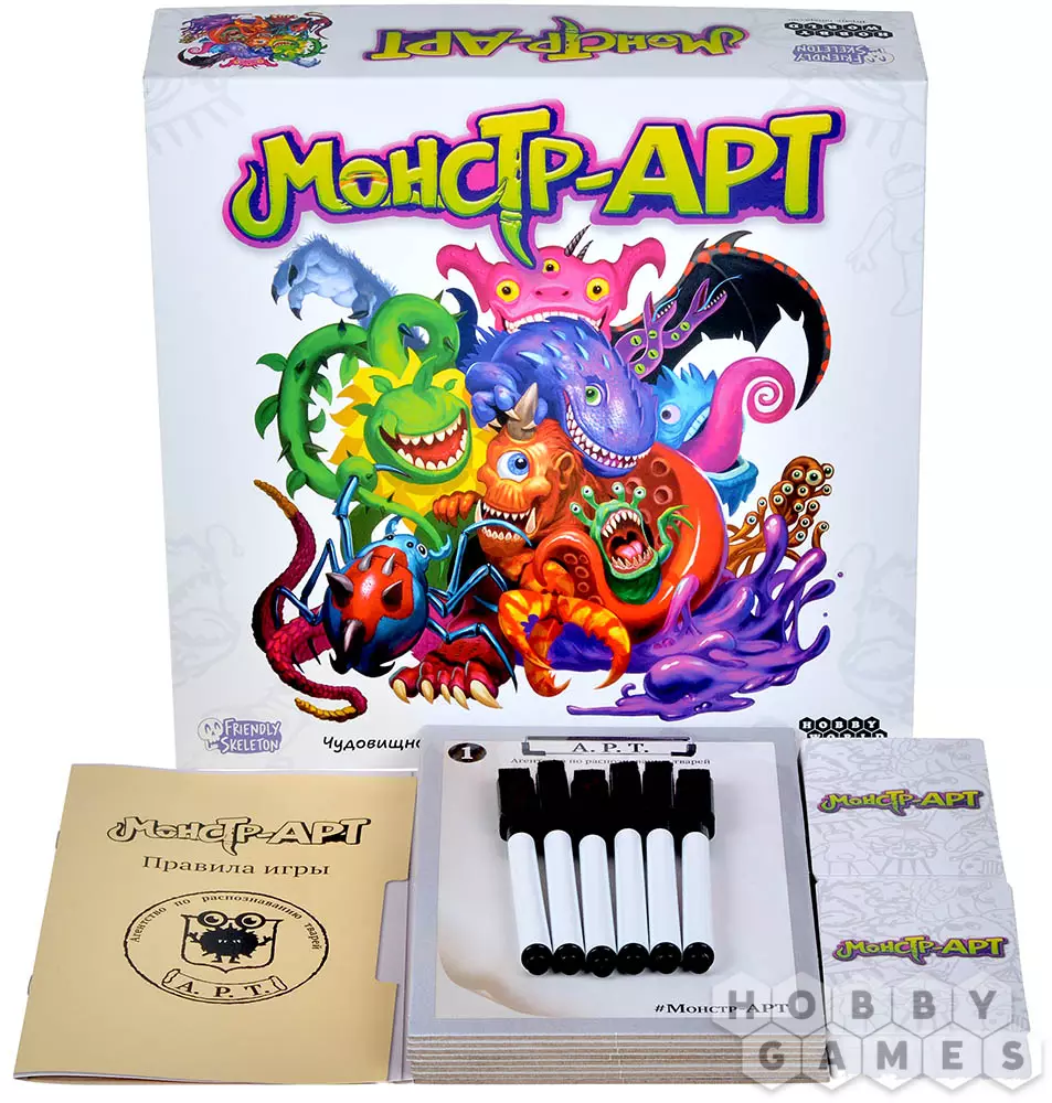 У вас есть замечательный шанс открыть в себе художественный талант! Агентство по распознаванию тварей (А. Р. Т.) открывает двери юным криминалистам! В этой игре любой может стать настоящим художником-детективом. Игроки вооружаются кистями и красками, а один из них запоминает монстра с карточки и описывает его: “У него было три крохотных глаза и могучие крылья!”