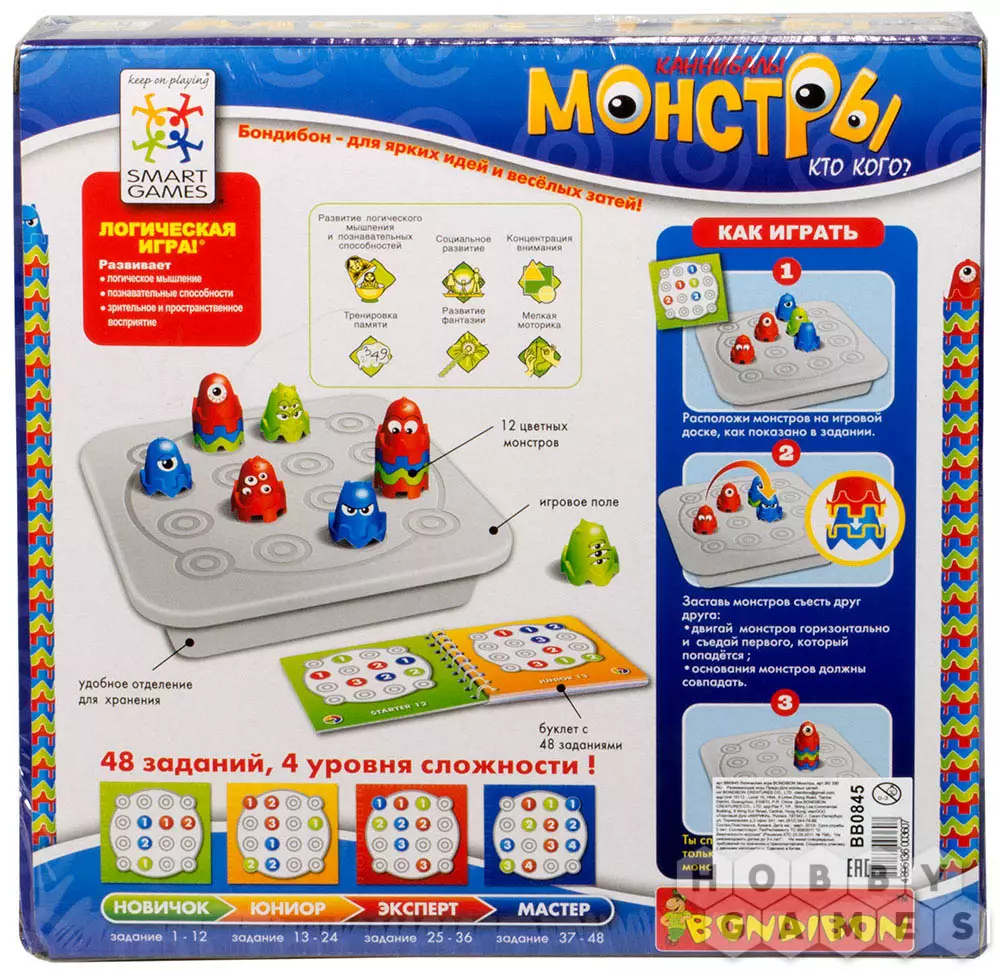 На одной далёкой планете живут ненасытные монстры. Вопросы волнующие всех: кто поест, а кто будет съеден? И какой монстр останется в живых? С каждым ходом и "каждым укусом" ты приближаешься к ответам на вопросы. Будь внимателен! Монстр может "съесть" другого, только когда фигурка "нападающего" может быть точно установлена на фигурке его "жертвы". Если ты "изголодался" по веселью, эта увлекательная логическая игра для тебя. Позволь монстрам "перекусить", и пусть выживет сильнейший.