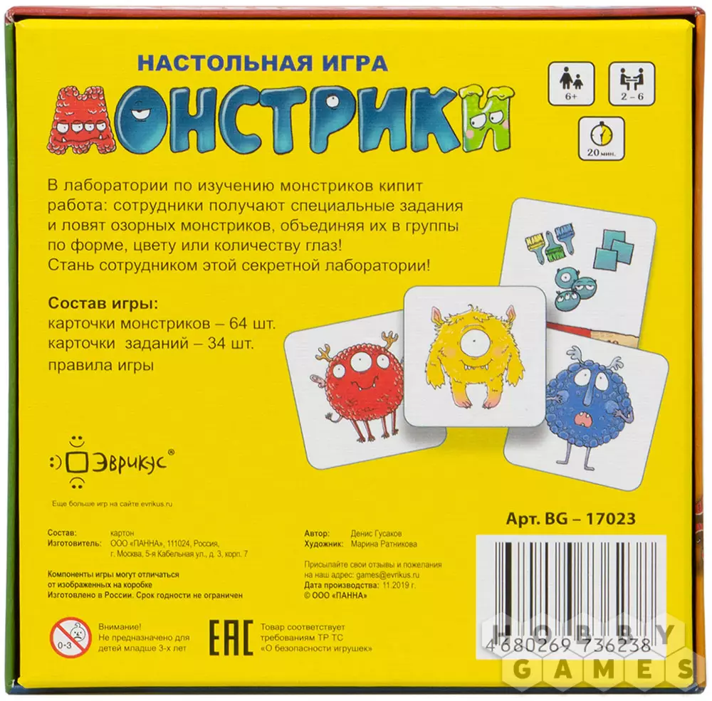 В простой детской игре "Монстрики" вам нужно выполнять научные задания, находя и объединяя всех монстриков по какому-либо признаку: всех трёхглазых, всех зелёных или всех круглых. Задания отличаются по сложности, чтобы более опытным игрокам тоже было интересно играть, а в конце партии самый внимательный научный сотрудник станет победителем.