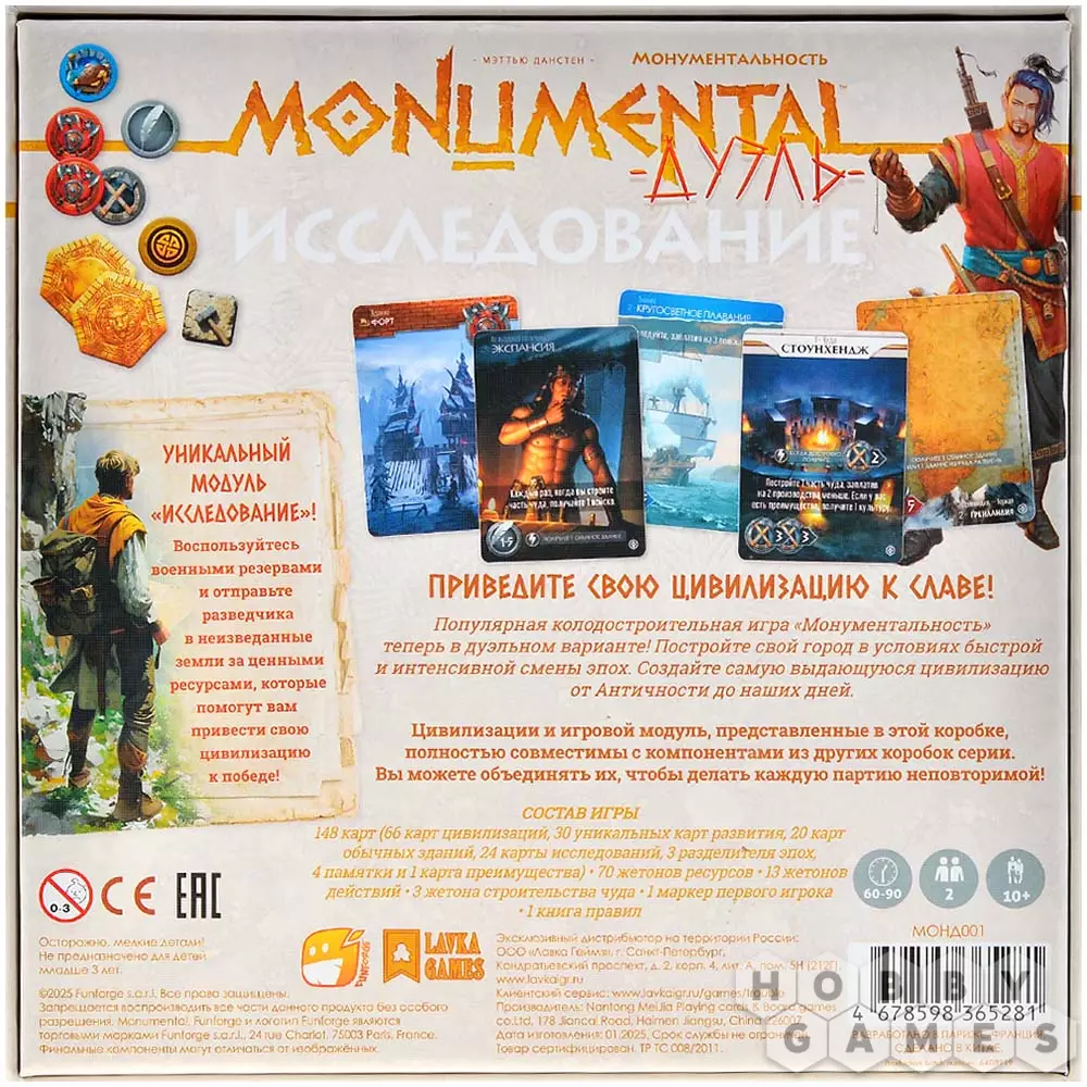 Сквозь толщу веков – к величию! В этой игре вы – архитектор цивилизации. Заложите фундамент города и ведите его через эпохи, балансируя между развитием, культурой, технологиями и экспансией. Меняйте облик своего владения, избавляйтесь от старого и возводите новое. Победителем станет тот, чей вклад в историю будет самым весомым – тот, кто наберёт наибольшее количество победных очков.