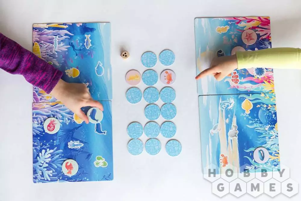 В ознакомительной игре, предназначенной для малышей до трёх лет, родителям вместе с ребёнком предлагается рассмотреть каждое из пяти игровых полей, входящих в комплект, рассказать о морских обитателях: как они называются, чем питаются, яркие черты их поведения. Также можно брать жетончики и находить для них соответствующие места на полях.