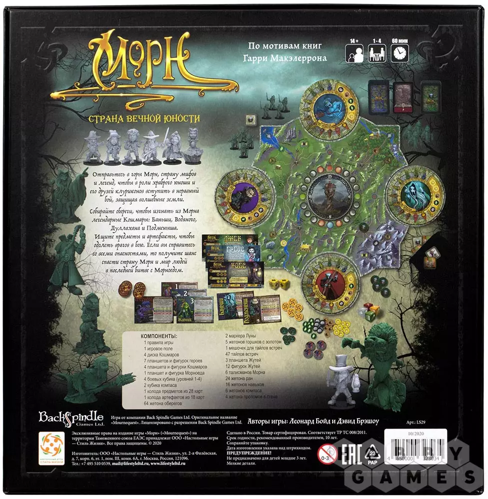"Морн. Страна вечной юности" – это локализация разработанной издательством Backspindle Games кооперативной игры MourneQuest. Игра отличается высоким качеством компонентов, что отмечено командой Dice Tower, а в отечественной версии игры миниатюры были ещё немного усовершенствованы и стали более устойчивыми. В сообществе настольщиков игра вызвала множество положительных отзывов: отмечается сбалансированный соло-режим, где игроку предстоит управлять двумя героями одновременно, а в кооперативном режиме для 2-4 игроков удивляет проработанная система взаимодействий героев и их способностей. Присоединяйтесь к героям Морна и защитите волшебное королевство от нависшей угрозы!