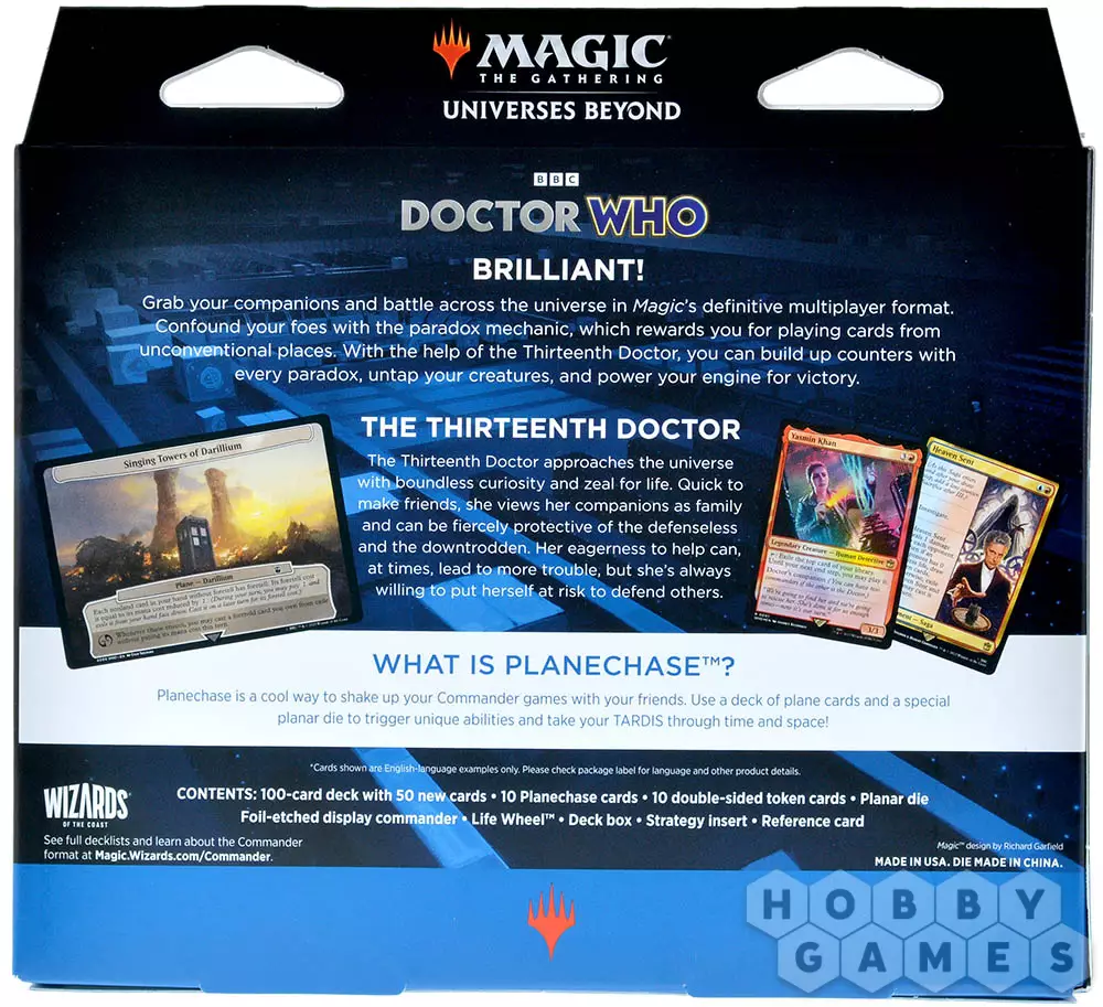Пришла пора изучить пространство, а вместе с тем и время в новом выпуске Magic: The Gathering, посвящённом приключениям пришельца по имени Доктор. Познакомьтесь со множеством спутников Доктора, одолейте своих врагов и исследуйте бесконечную вселенную вместе с ТАРДИС!