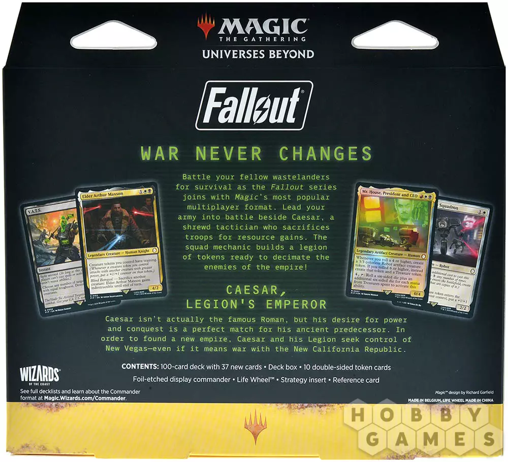 Оживите процесс ядерного распада, погрузившись в мир с самыми передовыми разработками и легендарными героями из вселенной Fallout, начиная с 1997 года! В этом выпуске Magic: The Gathering вас ждут угрозы из Пустоши: Супермутанты, Криптиды, Рейдеры и множество других опасностей, которые были тщательно протестированы в радиоактивных песках и получили одобрение Vault-Tec.