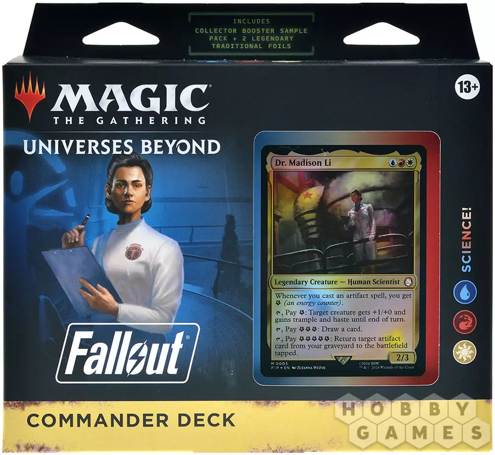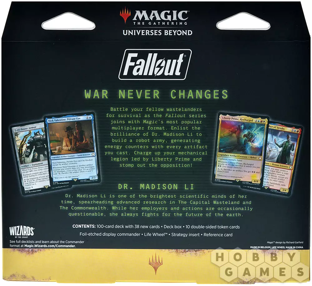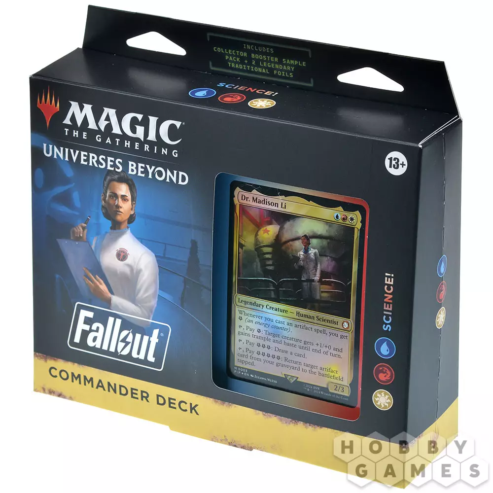 Оживите процесс ядерного распада, погрузившись в мир с самыми передовыми разработками и легендарными героями из вселенной Fallout, начиная с 1997 года! В этом выпуске Magic: The Gathering вас ждут угрозы из Пустоши: Супермутанты, Криптиды, Рейдеры и множество других опасностей, которые были тщательно протестированы в радиоактивных песках и получили одобрение Vault-Tec.