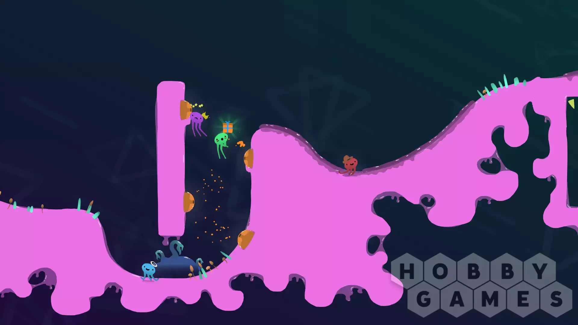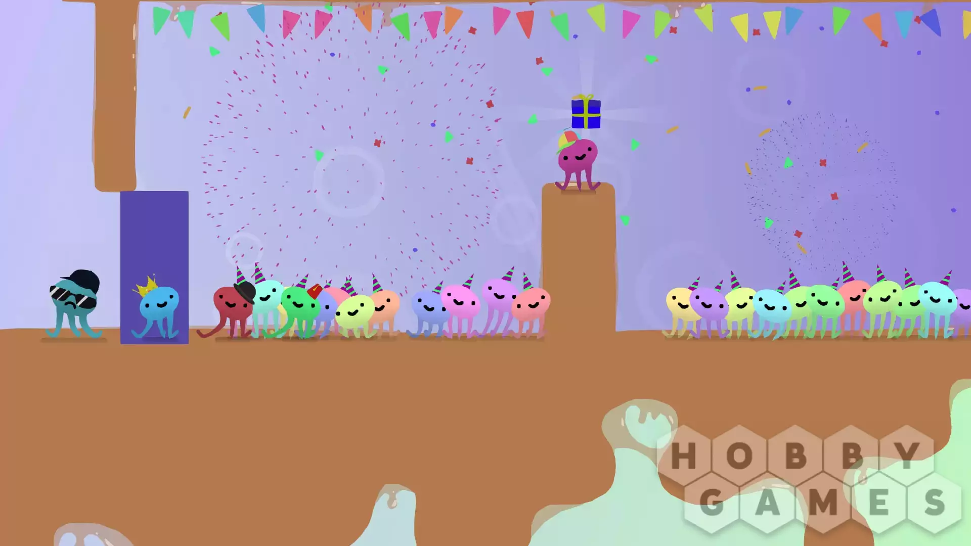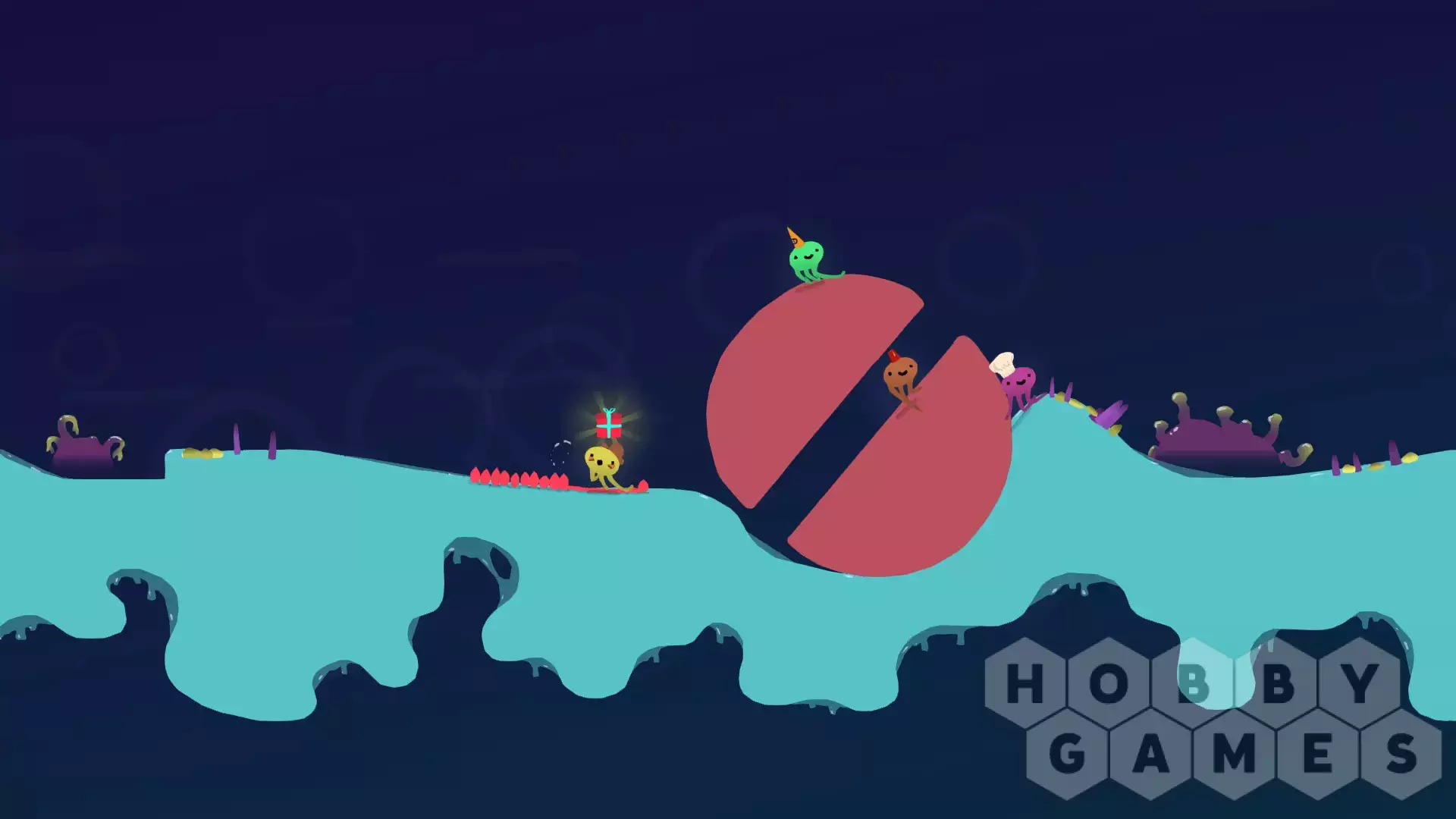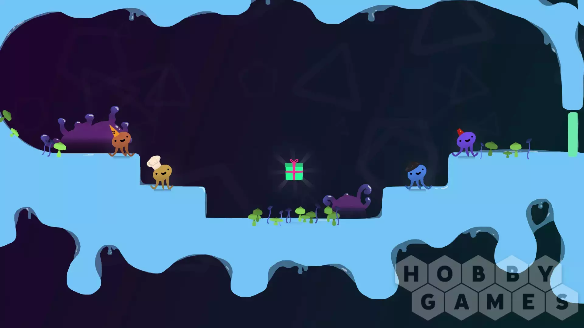 One octopus party, one shiny present, up to 4 scrambling podes ready to race for the right to party!