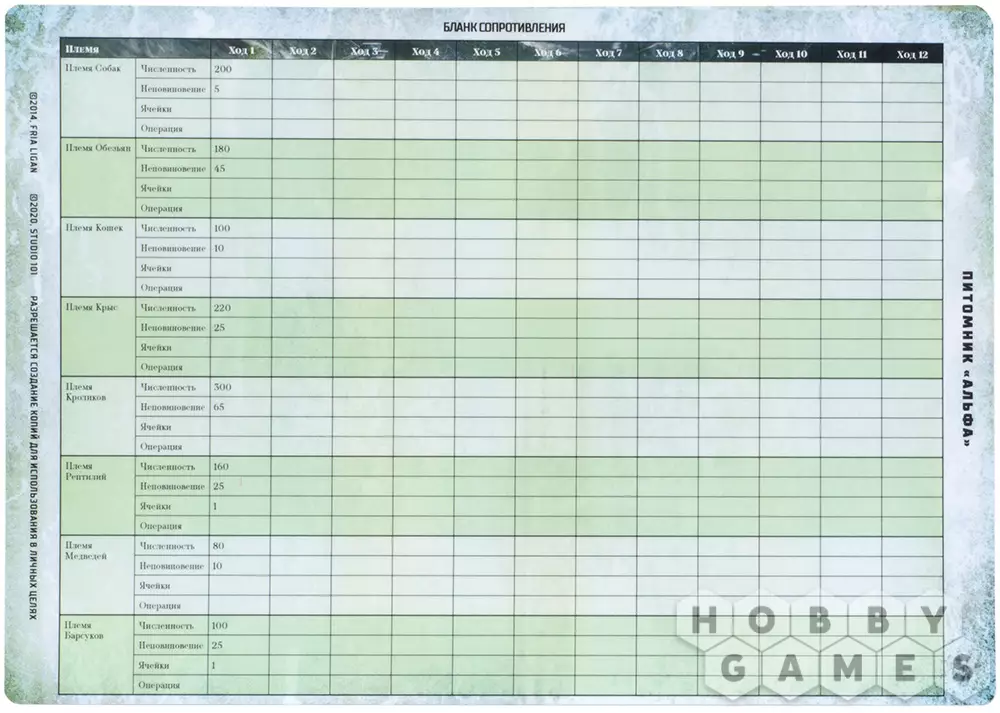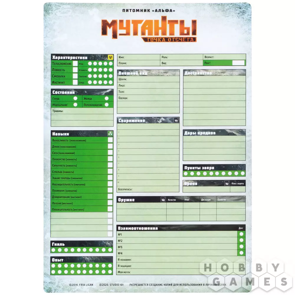 Мутанты. Питомник "Альфа": Набор бланков персонажей