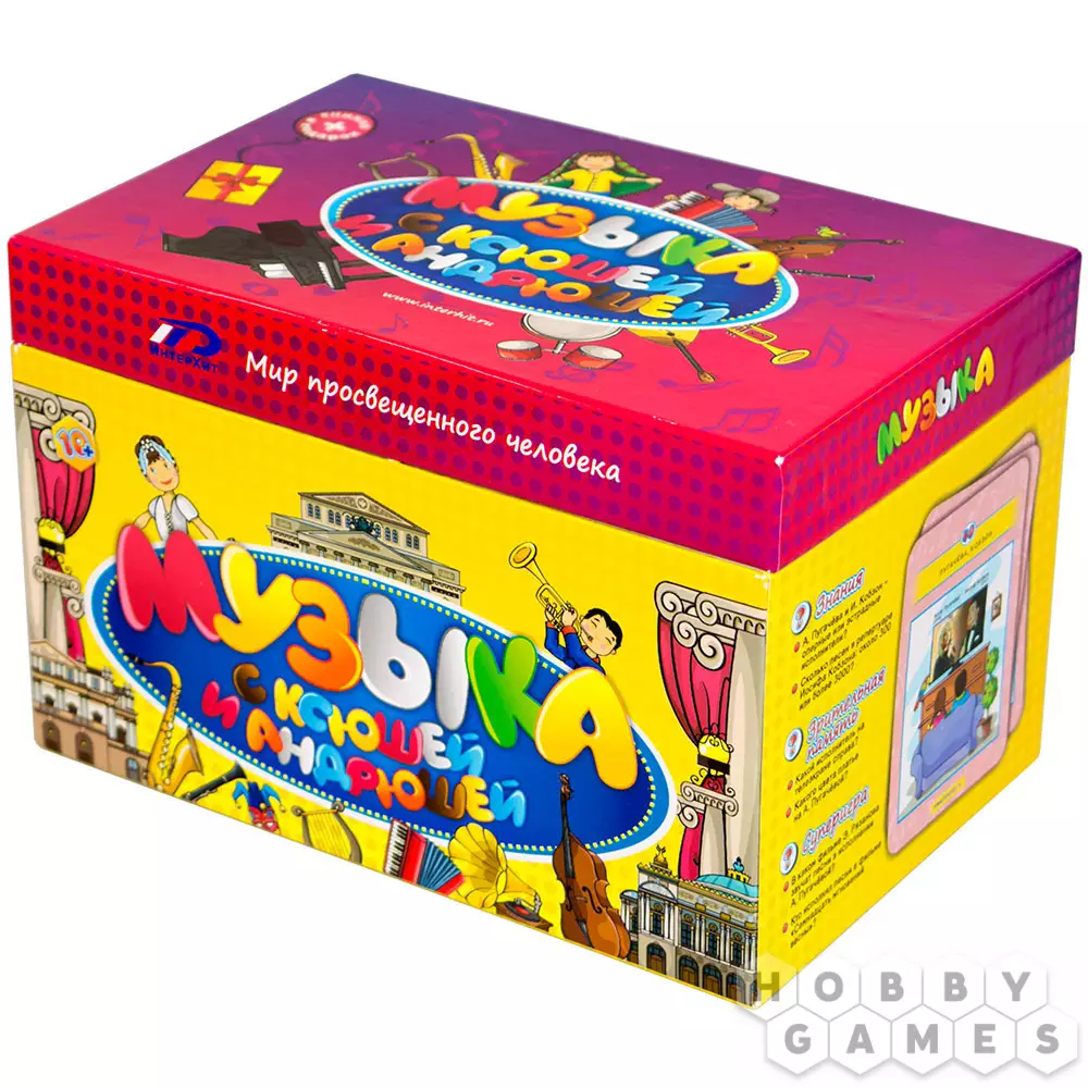 Настольная игра "Музыка с Ксюшей и Андрюшей" в лёгкой игровой форме познакомит ребят с нотами, расскажет об известных мировых композиторах и музыкантах, о стилях, танцах, инструментах и многом-многом другом. Также поможет развить зрительную память, предложив запомнить и рассказать об увиденных картинках. В сундучке с игрой Вы также найдёте книжку, рассказывающую об Андрюше, Ксюше и их семье.