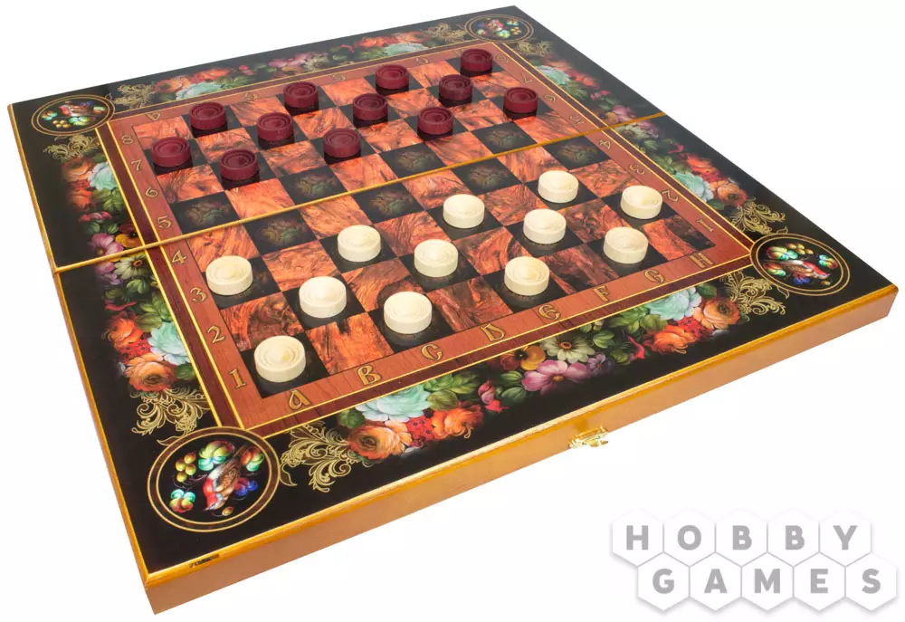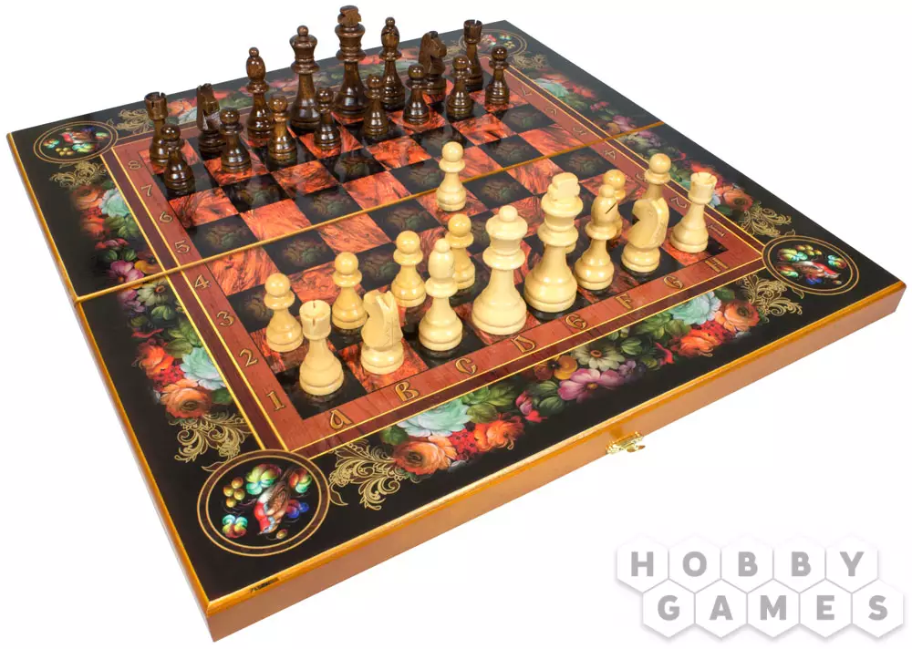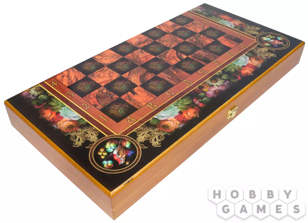 Набор классических игр "Цветы": Шахматы, шашки и нарды (500x250x55)